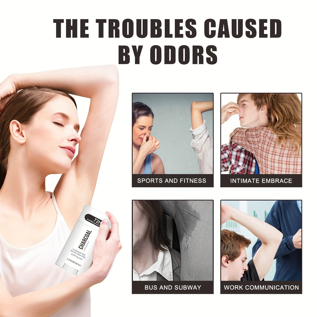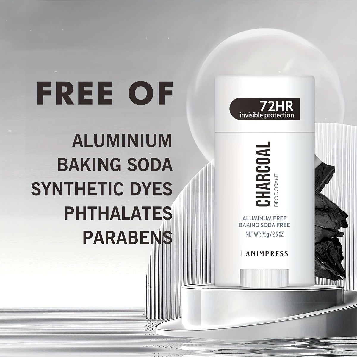 Lanimpress tomonidan 72 soat ko'rinmas himoya ko'mir deodoranti, 75g/2.6oz