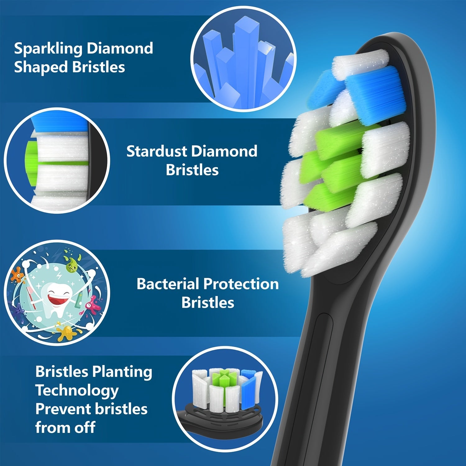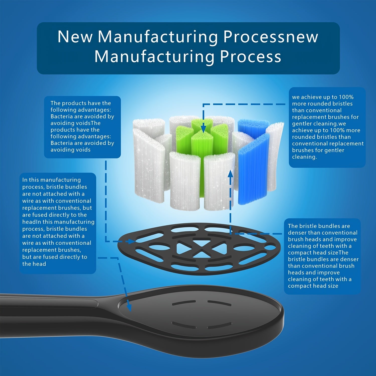 Elektr tish tozalash qurilmalari bilan mos keladigan 8 ta o'rnash uchun tish cho'tkasi boshliqlarining o'rnash uchun.