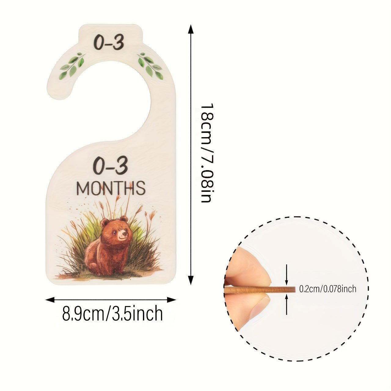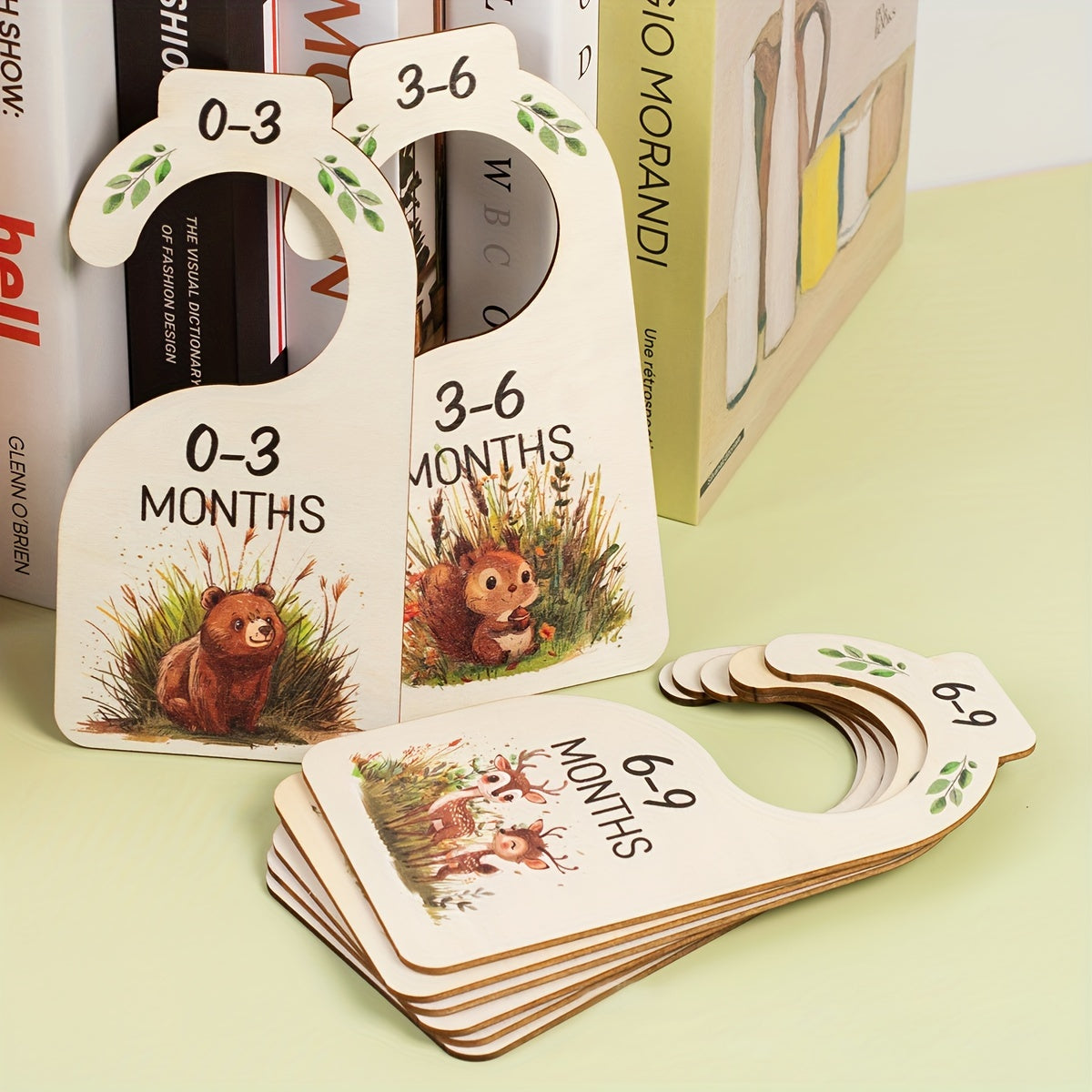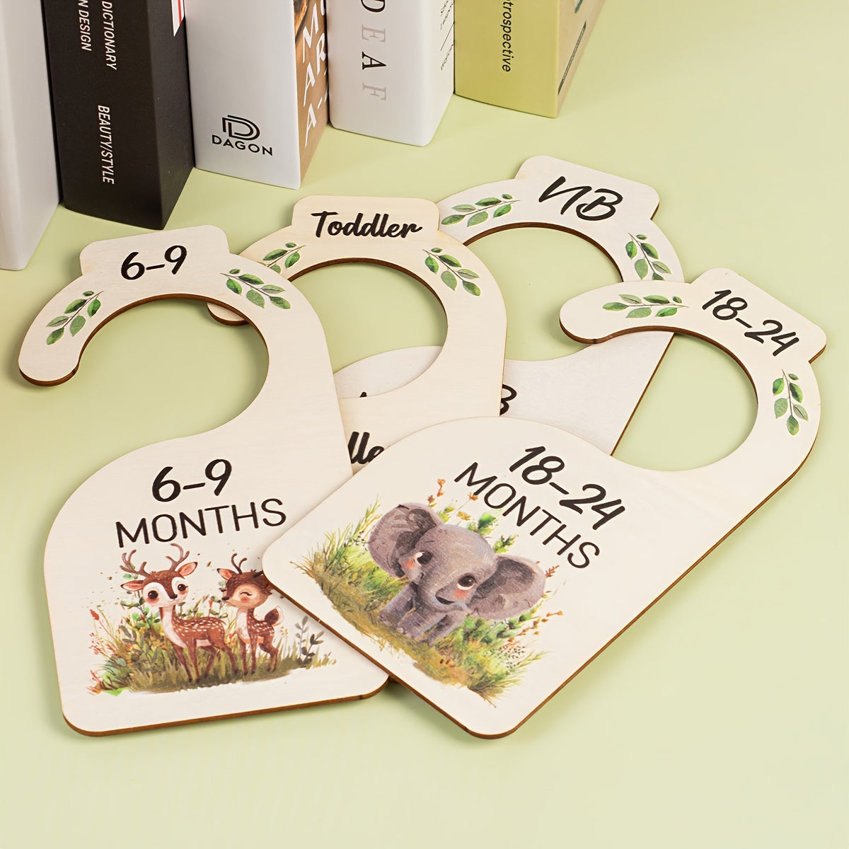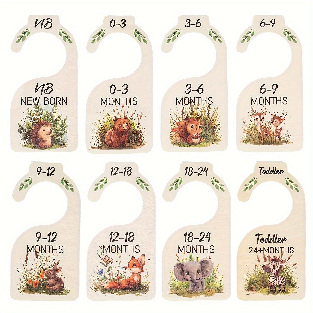 24 oy davomida kiyimlarni shkafda tartibga solish uchun 8 ta yog'och shkaf bo'linmalari, qiziqarli hayvon mavzulari bilan.