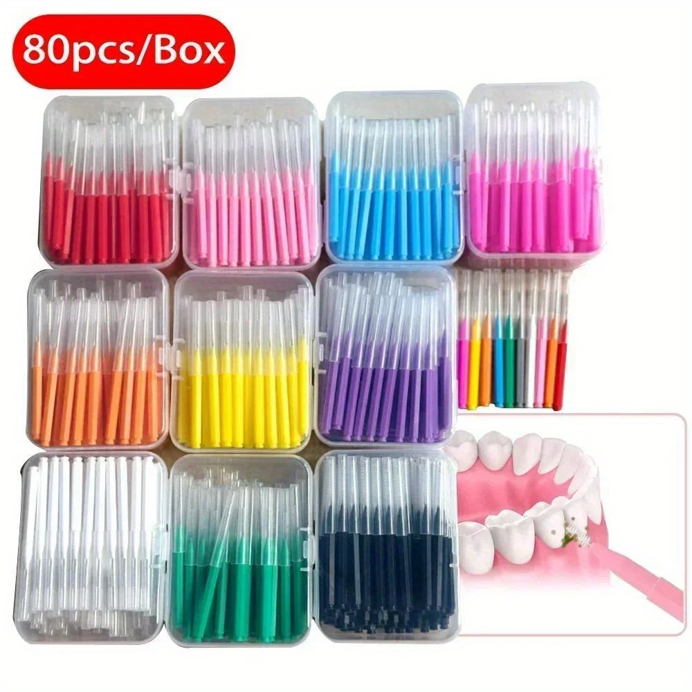 80 dona interdental cho'tkalar tishlarni tozalash uchun mikrotoʻqimalik sochlar bilan tartar olib tashlash