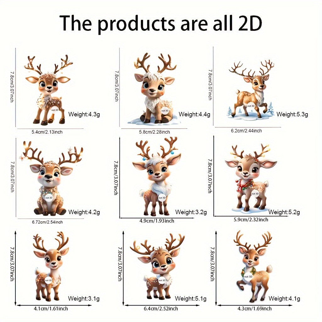 9 shirin akrilik kiyikcha bezaklari, chiroqlar bilan, Rojdestvo daraxti, Xellouin, avtomobil ichki bezaklari uchun
