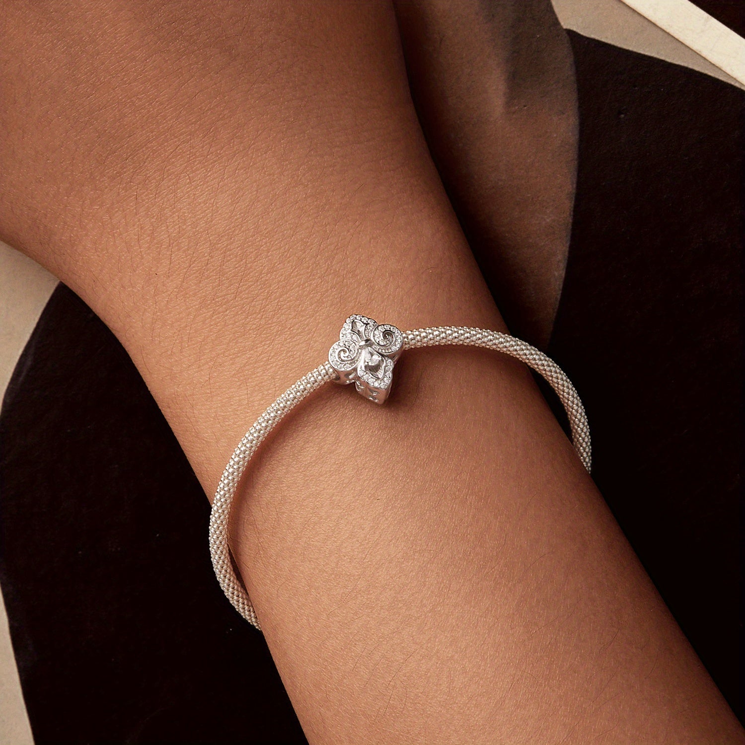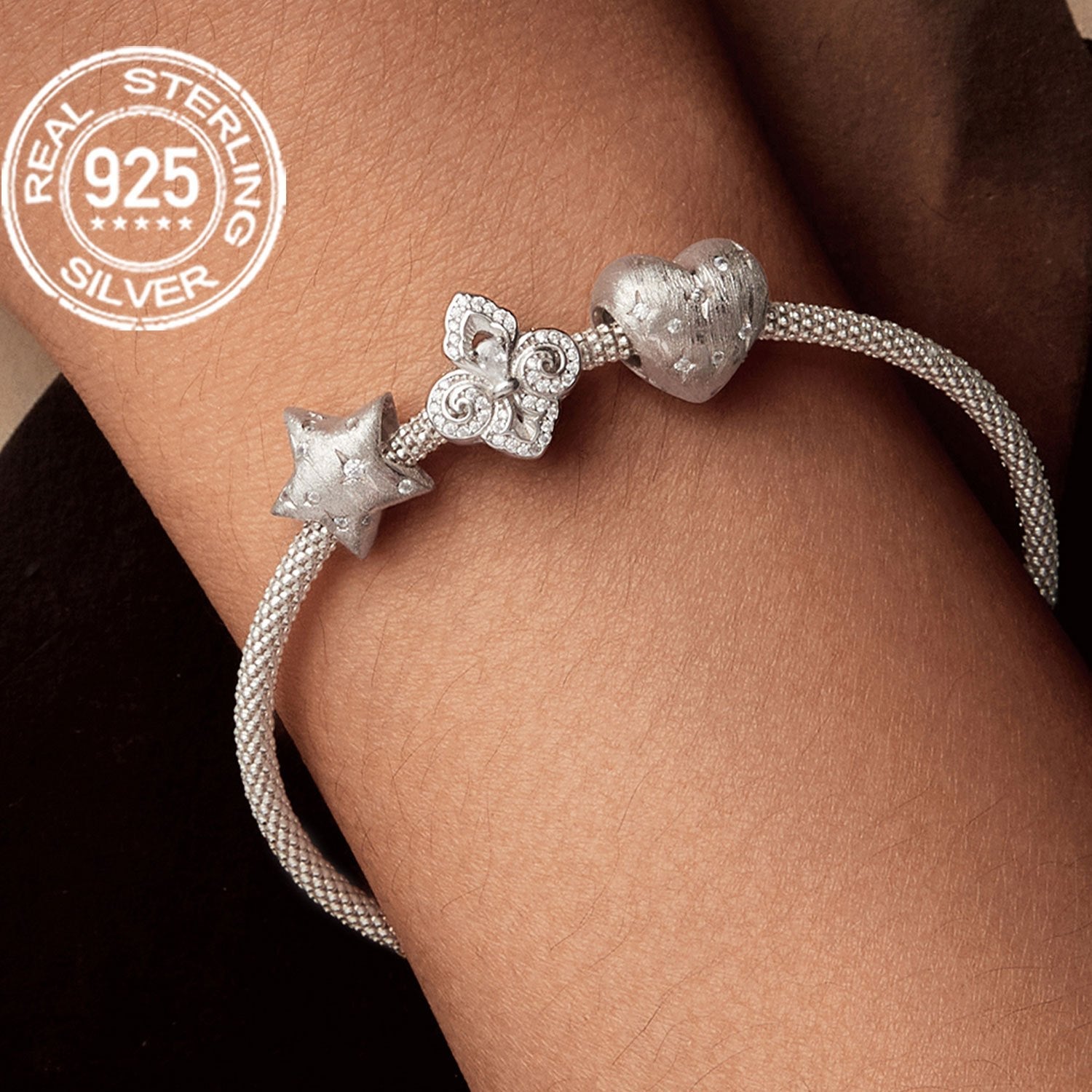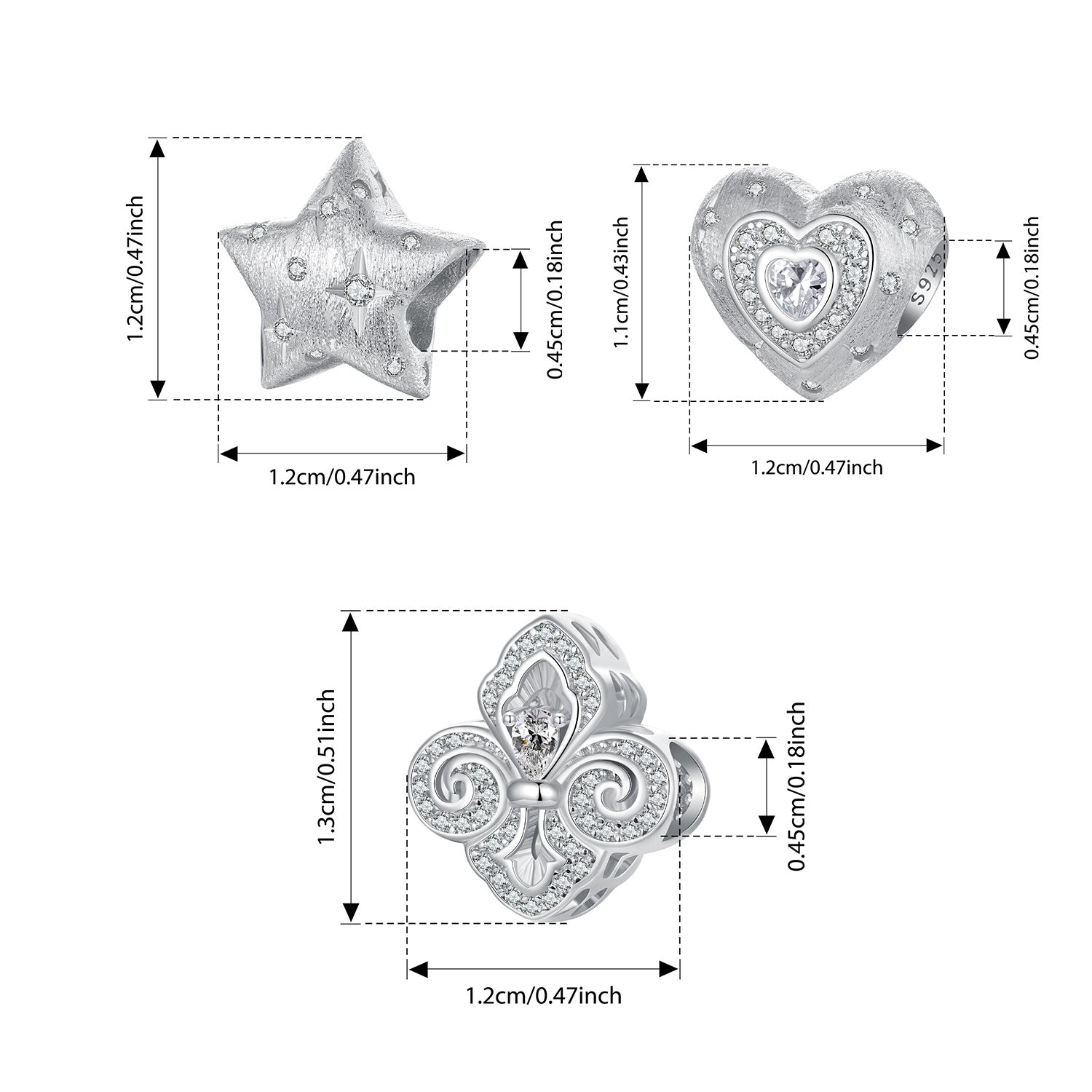 925 Sterling Silver Zirconia toshlari bilan, Rodiy qoplamali 2.2/1.8/2.5g, 925 Sof Kumush Rodiy qoplamali Ayollar uchun Iris Gul Yulduz Yurak Dizayni Beaded DIY Zargarlik Sovg'asi