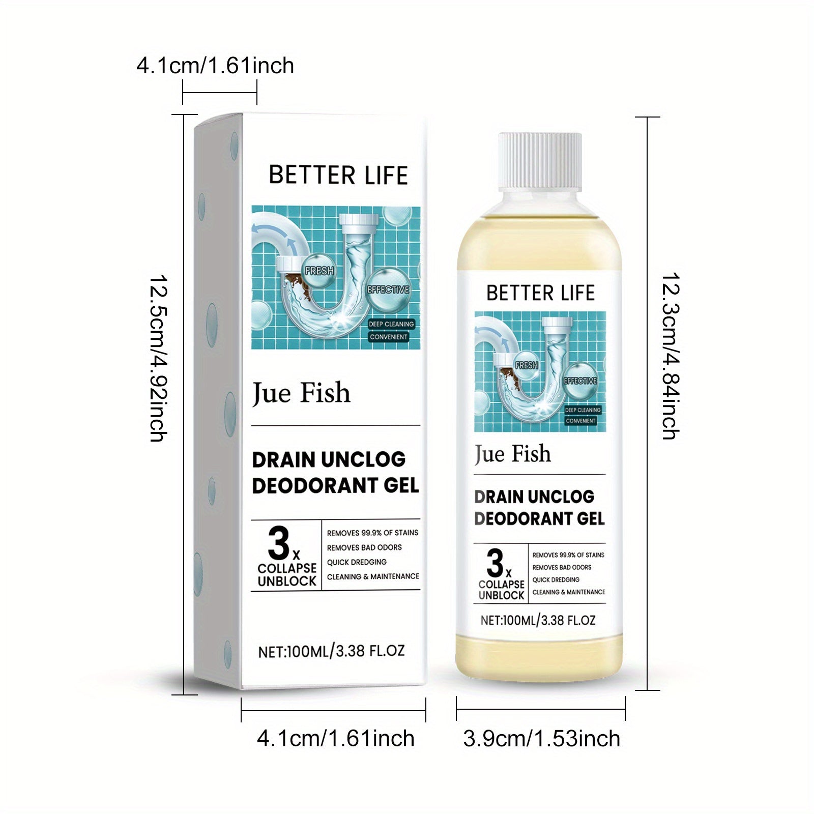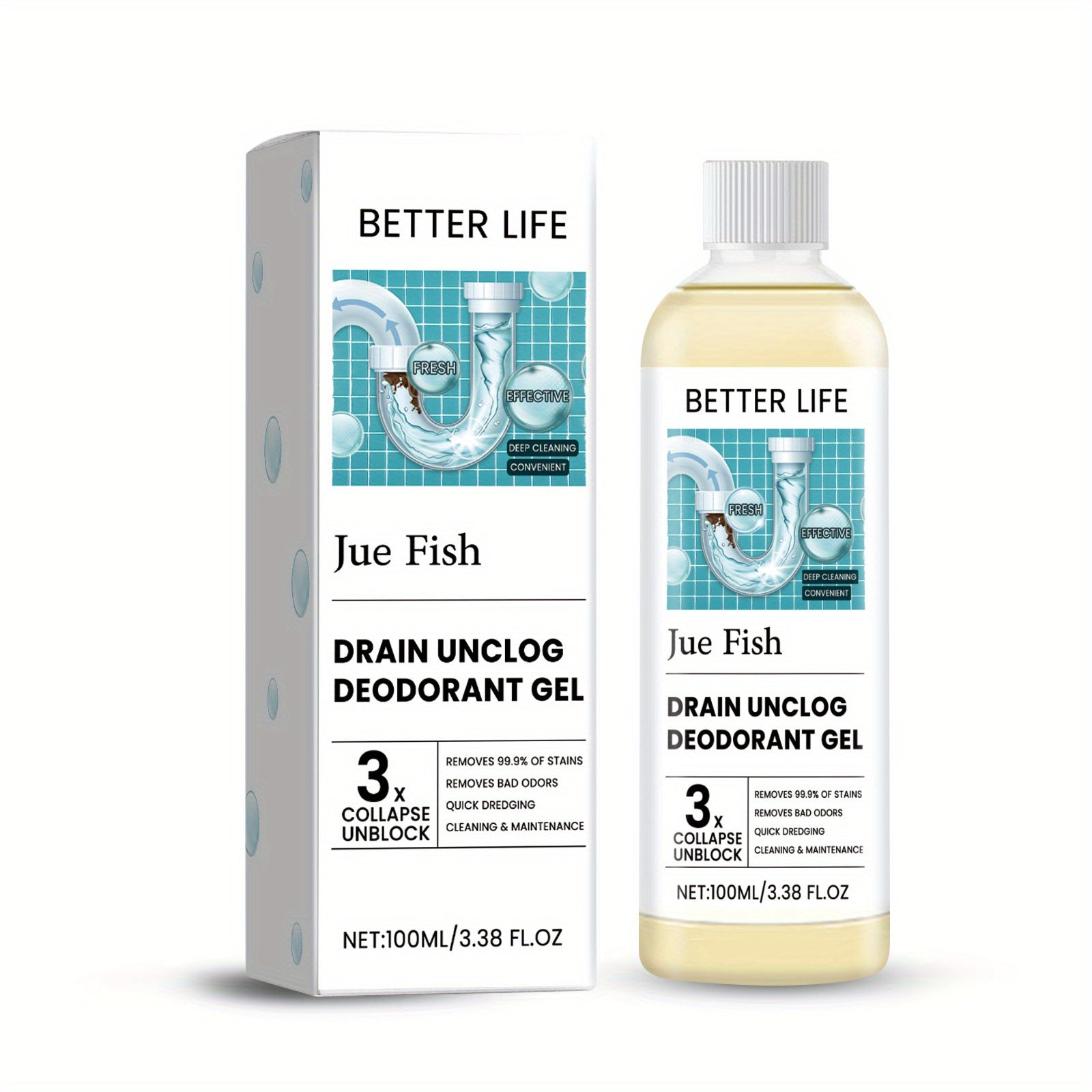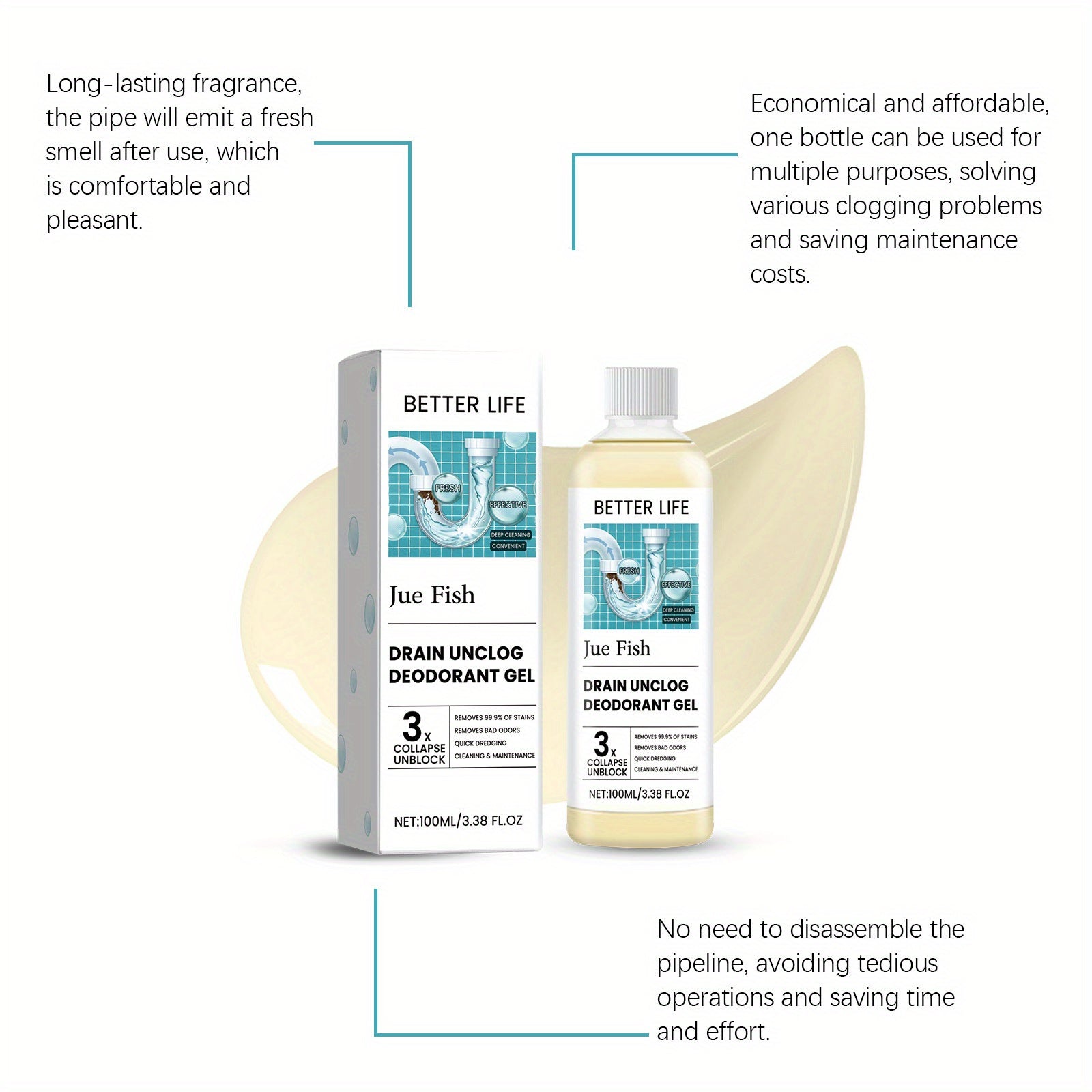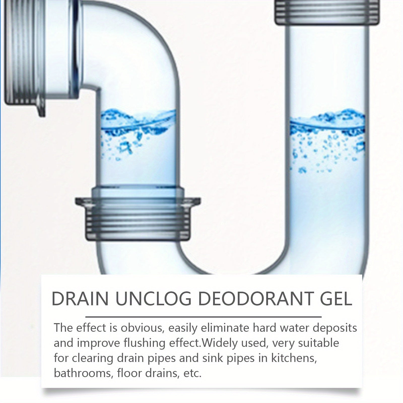 Oshxona va hammomdagi kanalizatsiya quvurlarini tozalash va hidni yo'qotish uchun gel, axlatni olib tashlaydi va yoqimsiz hidlarni yo'qotadi, 100mL hajmda mavjud.