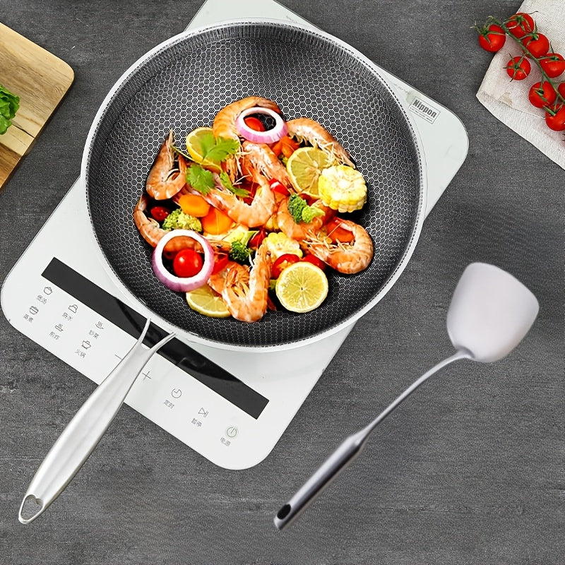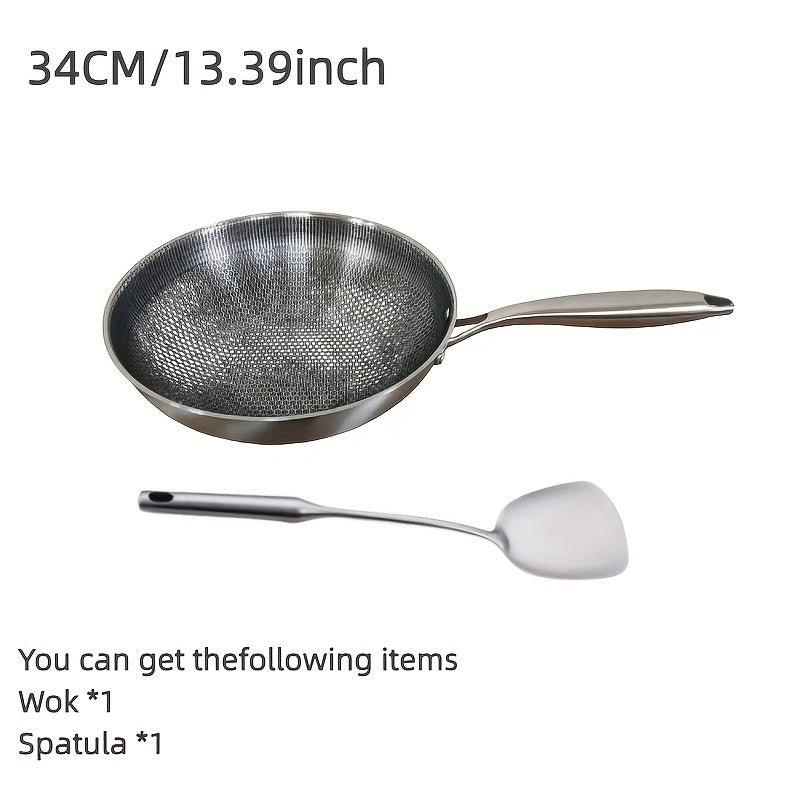 Zanglamaydigan po'latdan yasalgan asal honeycomb wok, yopishqoq bo'lmagan, induksiya, gaz plitkasi bilan mos, engil