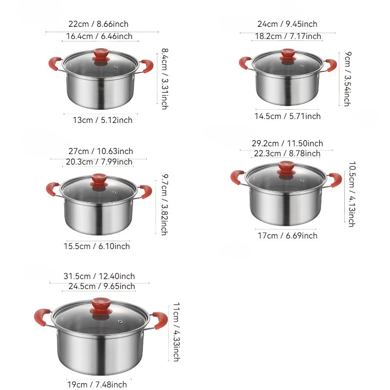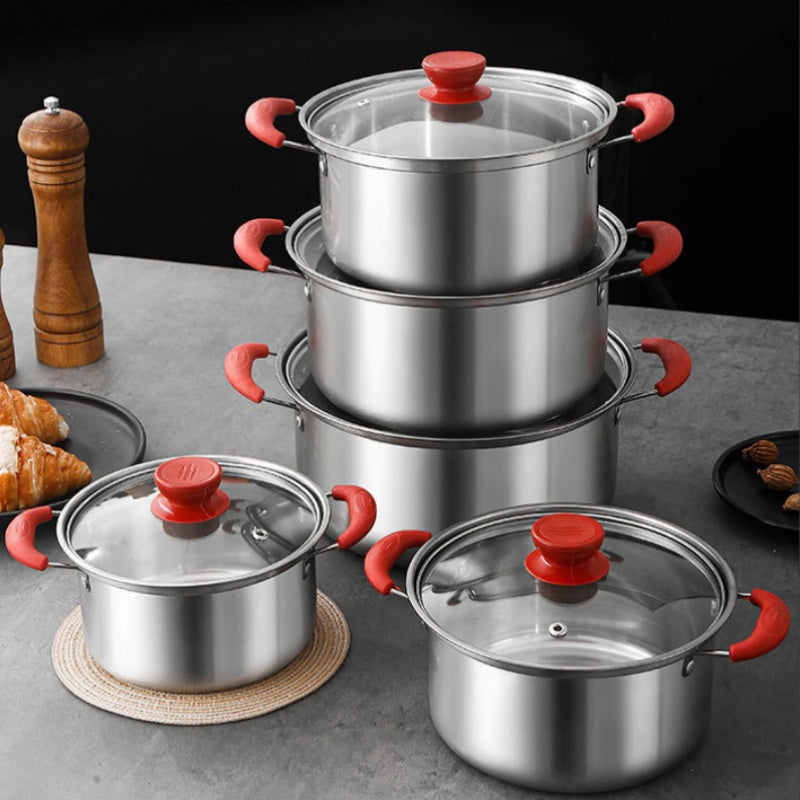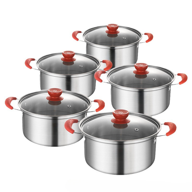 Shisha qopqoqli va asbob-uskunalar bilan 10 ta zanglamaydigan po'latdan tayyorlangan idishlar to'plami
