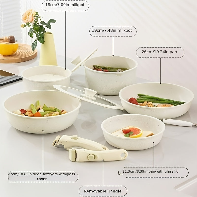 Zamonaviy alyuminiy oshxona to'plami, ajraladigan tutqich bilan, induksiya, gaz, elektr pechlar va mikroto'lqinli pech uchun, yopishmaydigan, oson tozalash uchun
