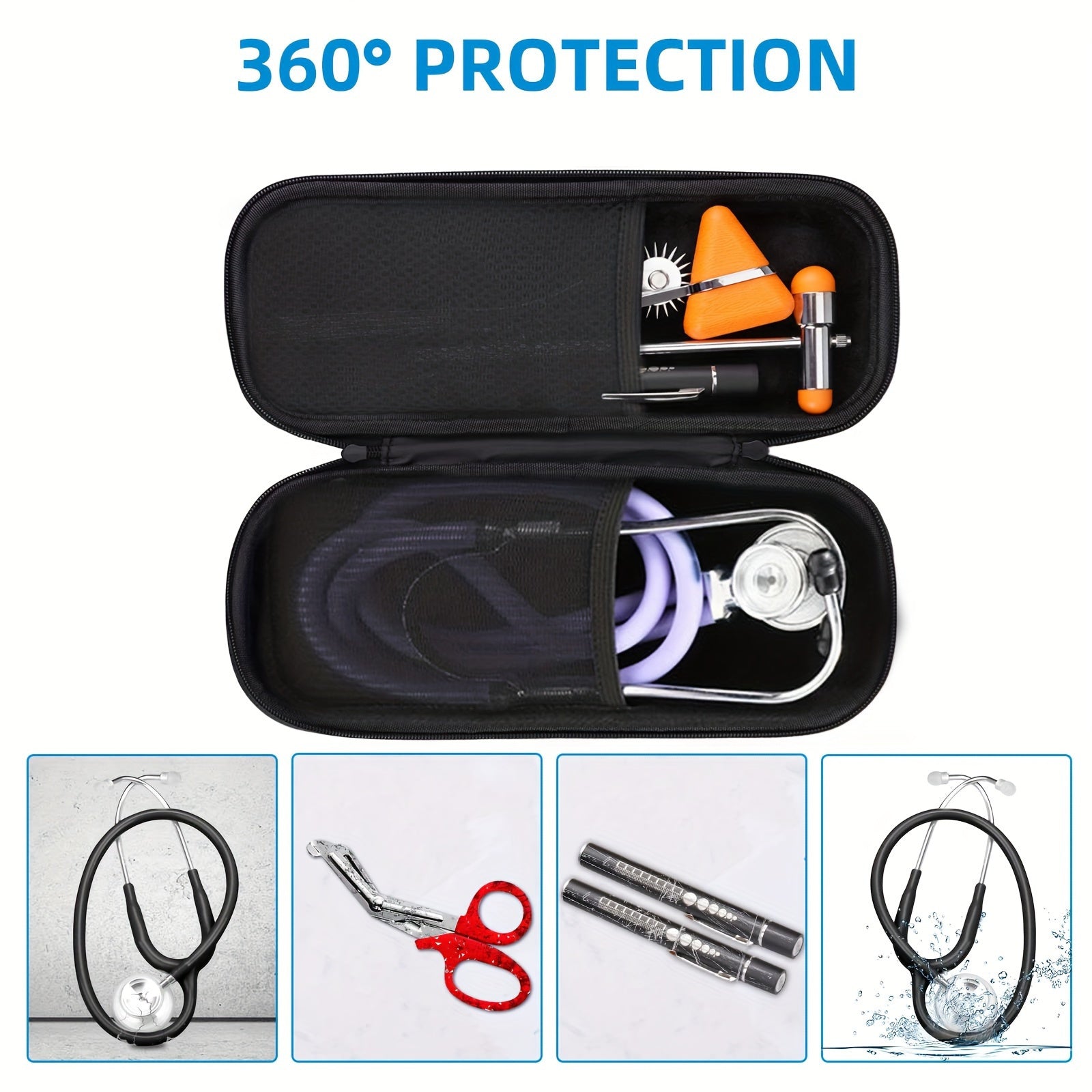 Uyda va sayohatda foydalanish uchun mustahkam EVA stetoskop qutisi, 360° himoya va suvga chidamlilikni ta'minlaydi. Tibbiy ta'minotlarni tartibga solish uchun ideal.