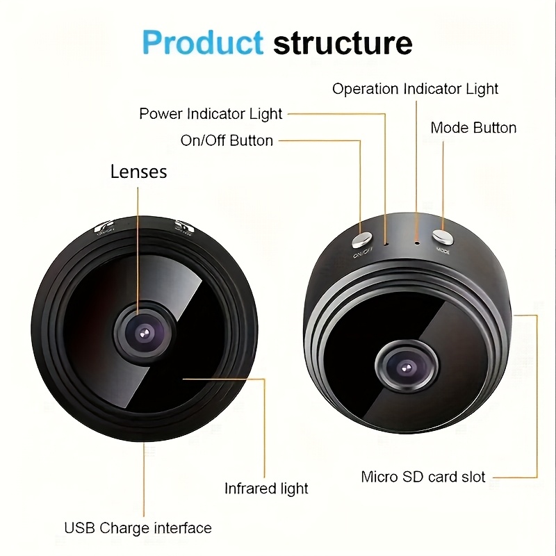 A9 simsiz xavfsizlik kamerasi, 480p HD va oson o'rnatish uchun magnit, USB quvvatlanishi, Wi-Fi ulanishi, ilova orqali boshqarish, audio ogohlantirishlar, uy monitoringi uchun portativ dizayn.