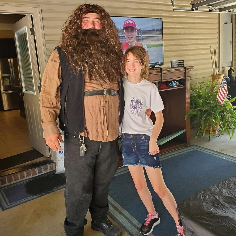 Halloween yoki Otalar kuni uchun to'plam, jigarrang sehrgar soqol va soch to'plami bilan, kostyumga bir oz hazil qo'shadi.