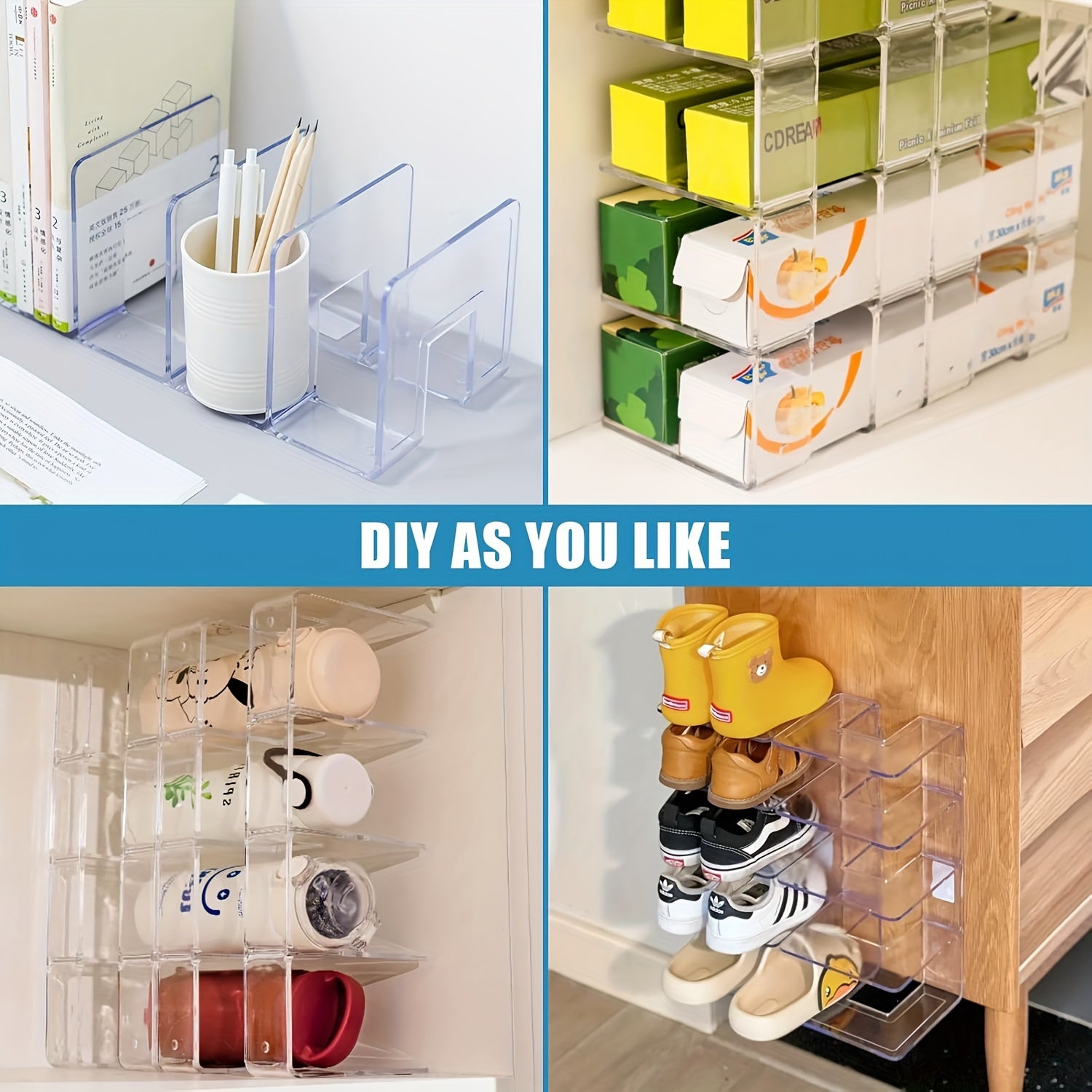 Akril sumka tashkilotchisi to'plami, shkaf saqlash uchun shaffof bo'linmalar, katta sig'im