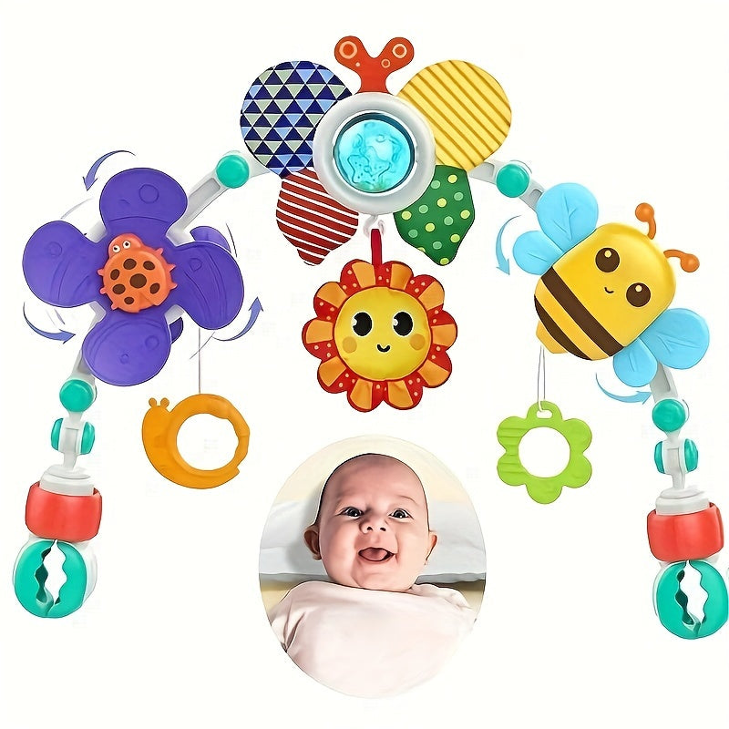 Körpə fəaliyyət o'yinchoqlari arka uchun beşiklar va avtomobil o'rindiqlari bilan sezgi o'yinchoqlari va aksessuarlar