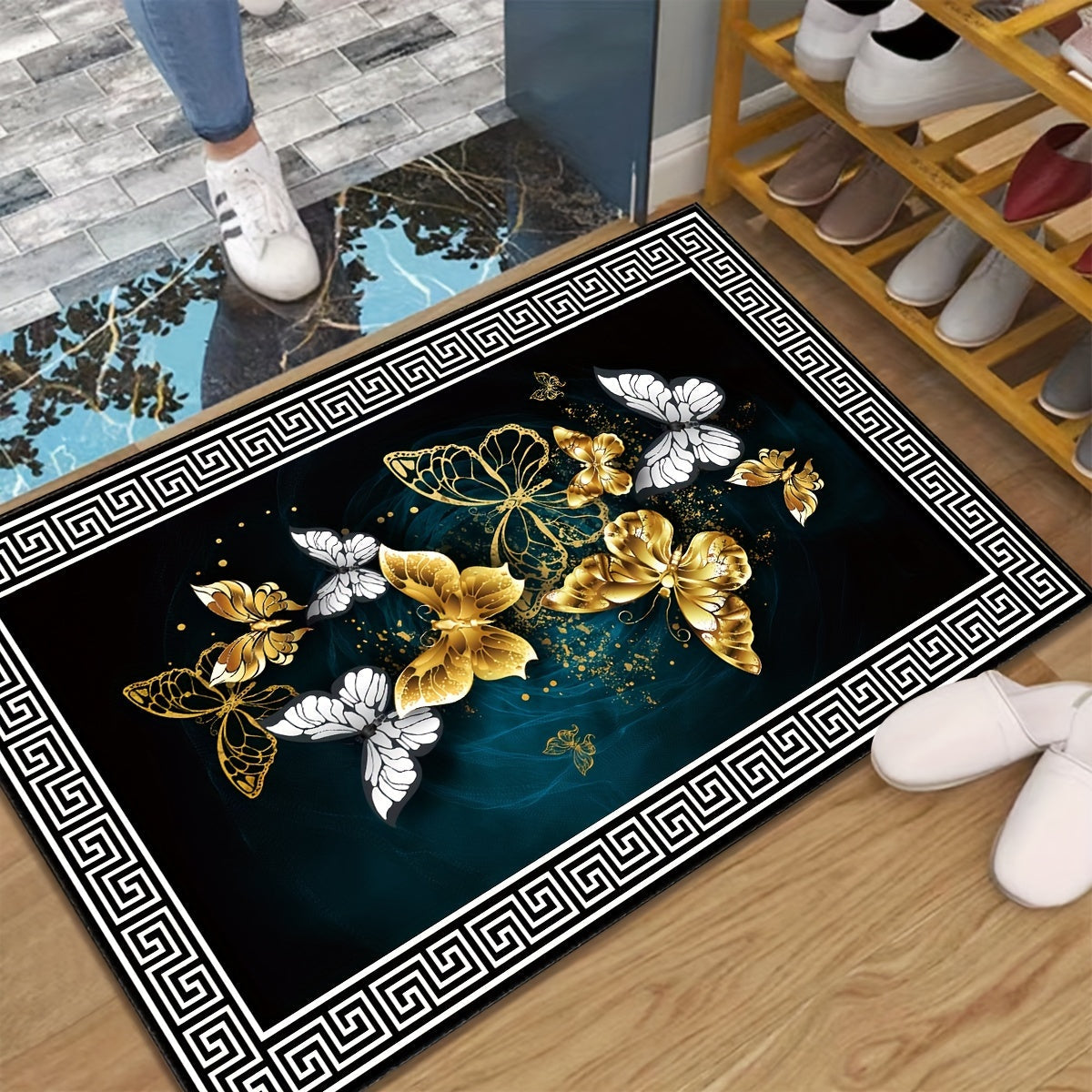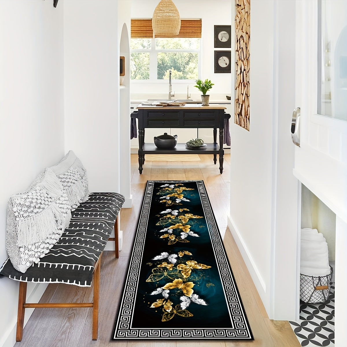 Qora va oltin rangli kapalak naqshli yugurish mato, sirgʻalmas, mashina yuviladigan, 49.99x79.98 sm