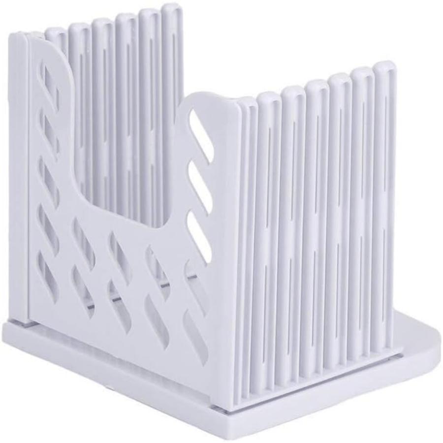 Moslashuvchan plastmassa nonni kesish uchun qo‘llanma, oq, yig‘iladigan oshxona asbobi