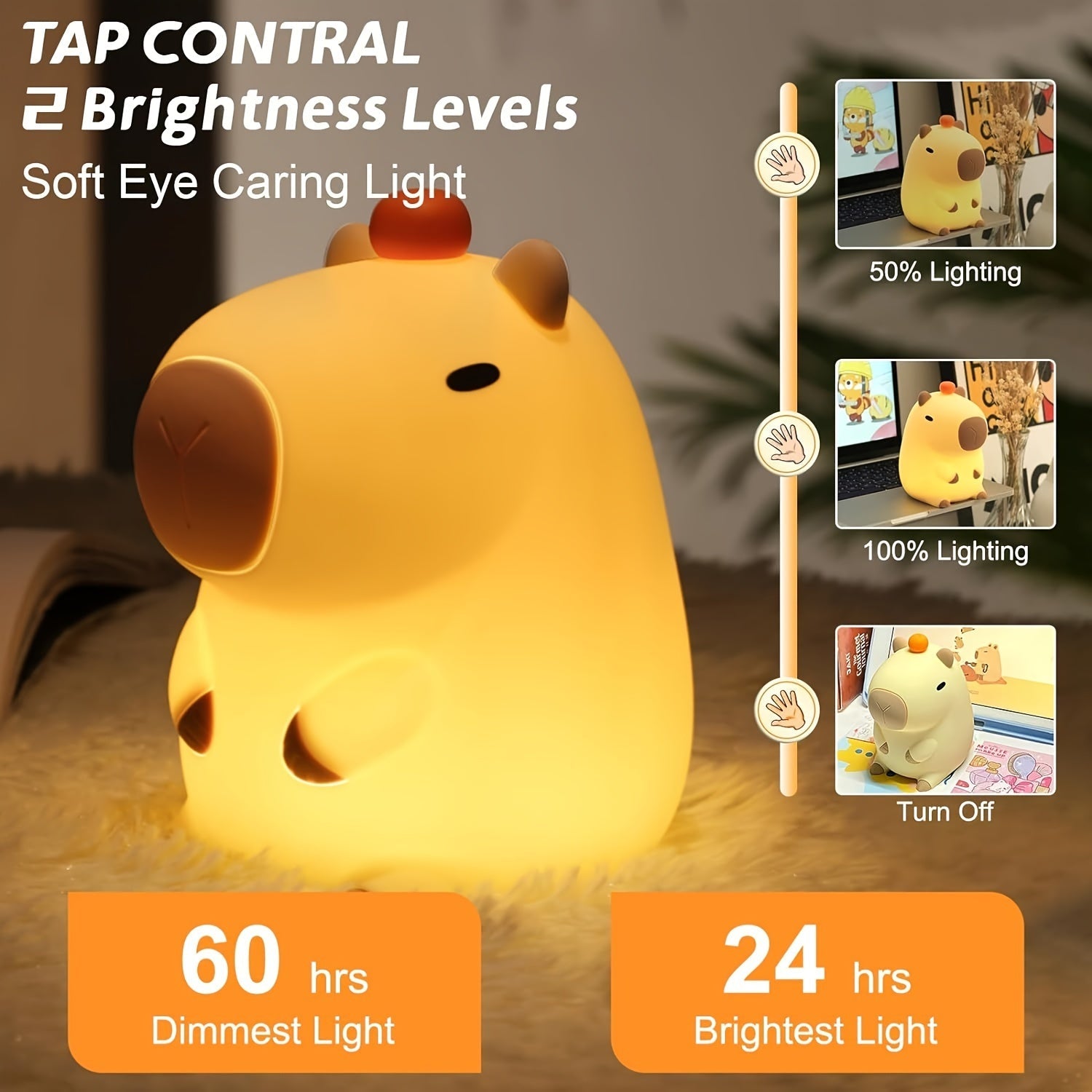 Yoqimli multfilm Capybara Silikon kechqurun chiroqi LED kechqurun lampasi qayta zaryadlash USB dimming xona dekoratsiyasi