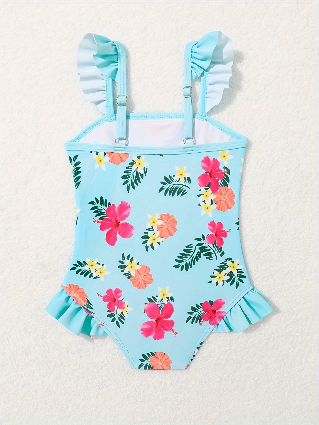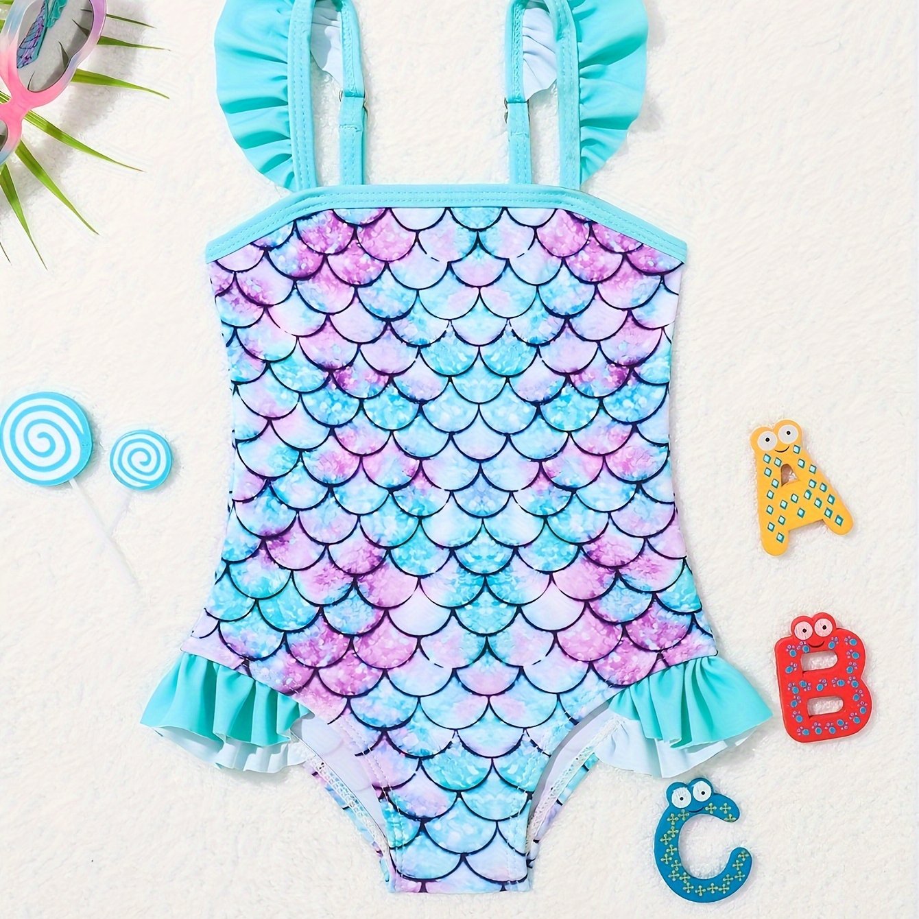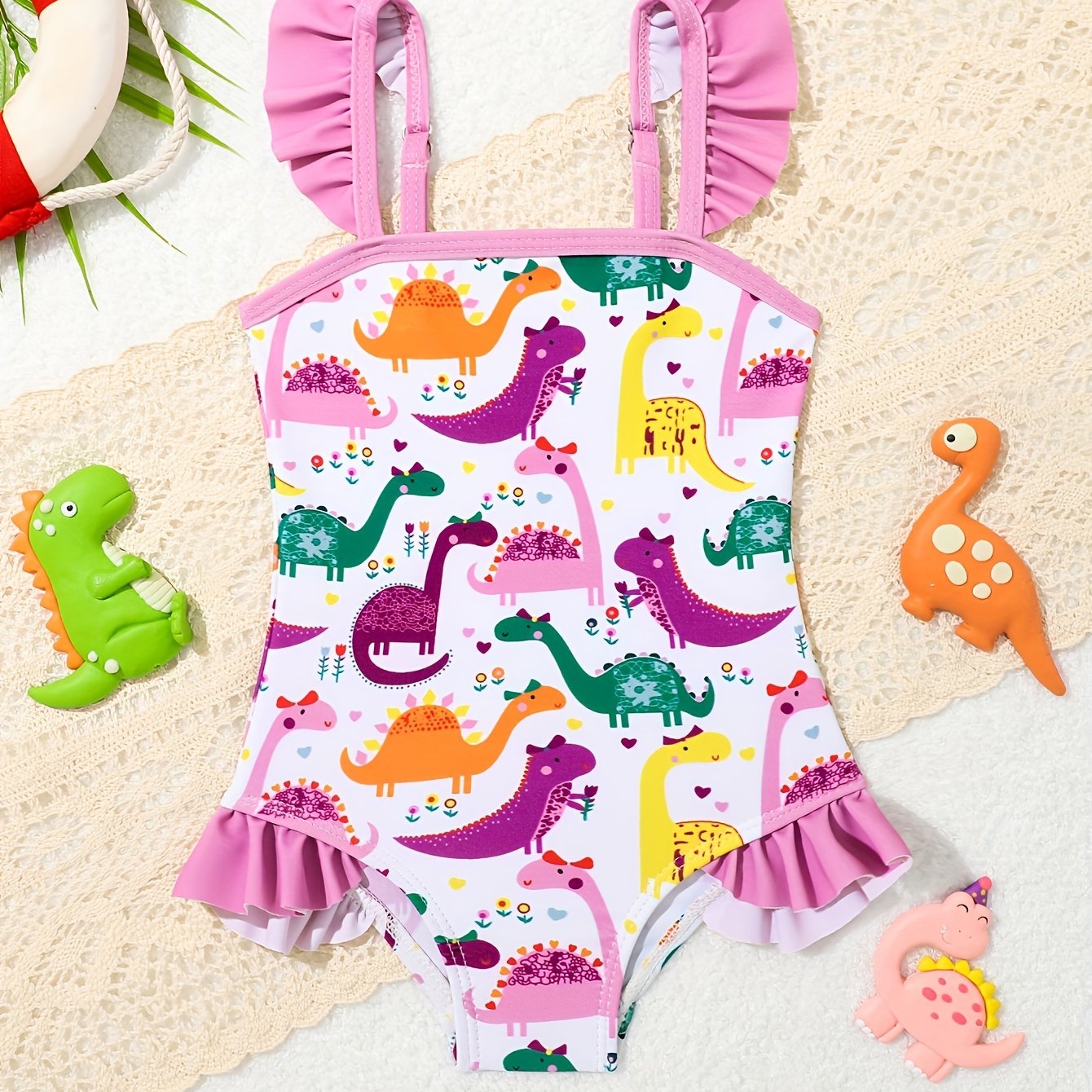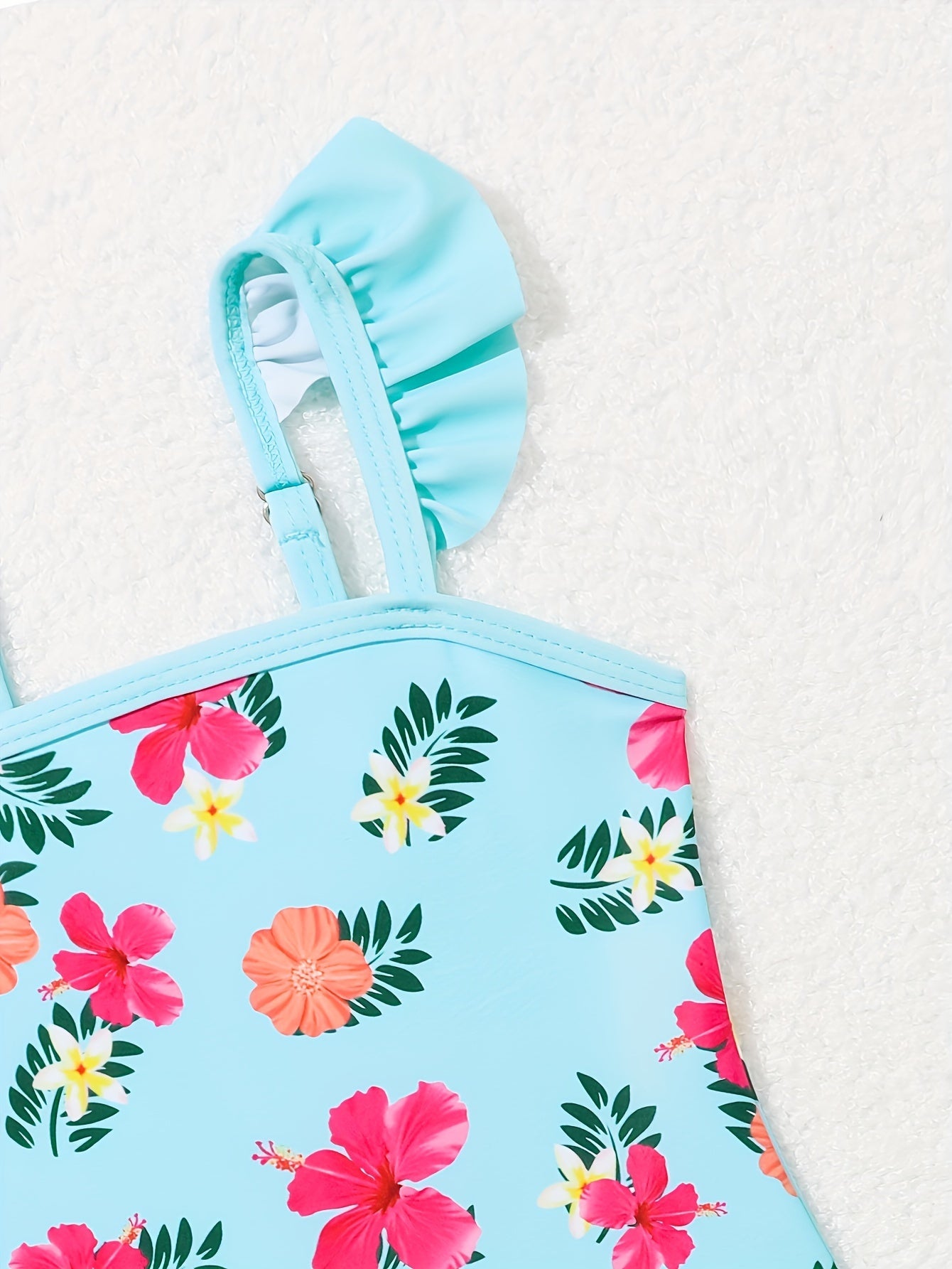 Qizlar uchun sevimli ananas naqshli bir qismli suzish kiyimi, tez quriydigan, cho'ziluvchan polyesterdan tayyorlangan, ruffle detali, bolalar uchun yelkasiz dizayn.