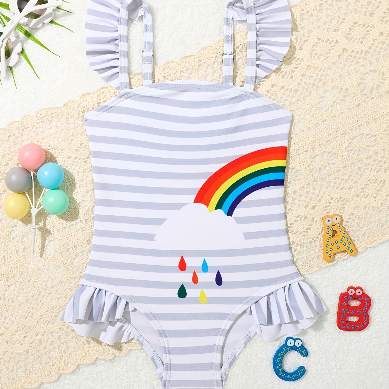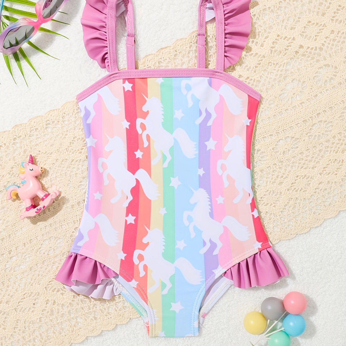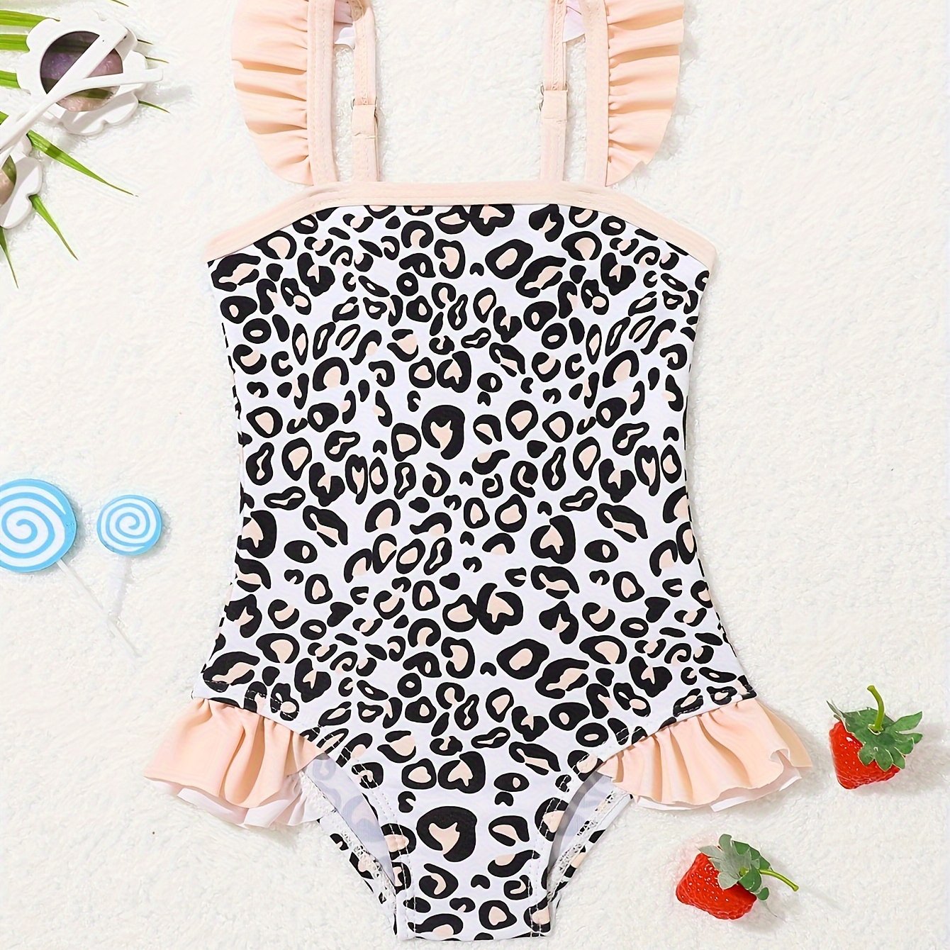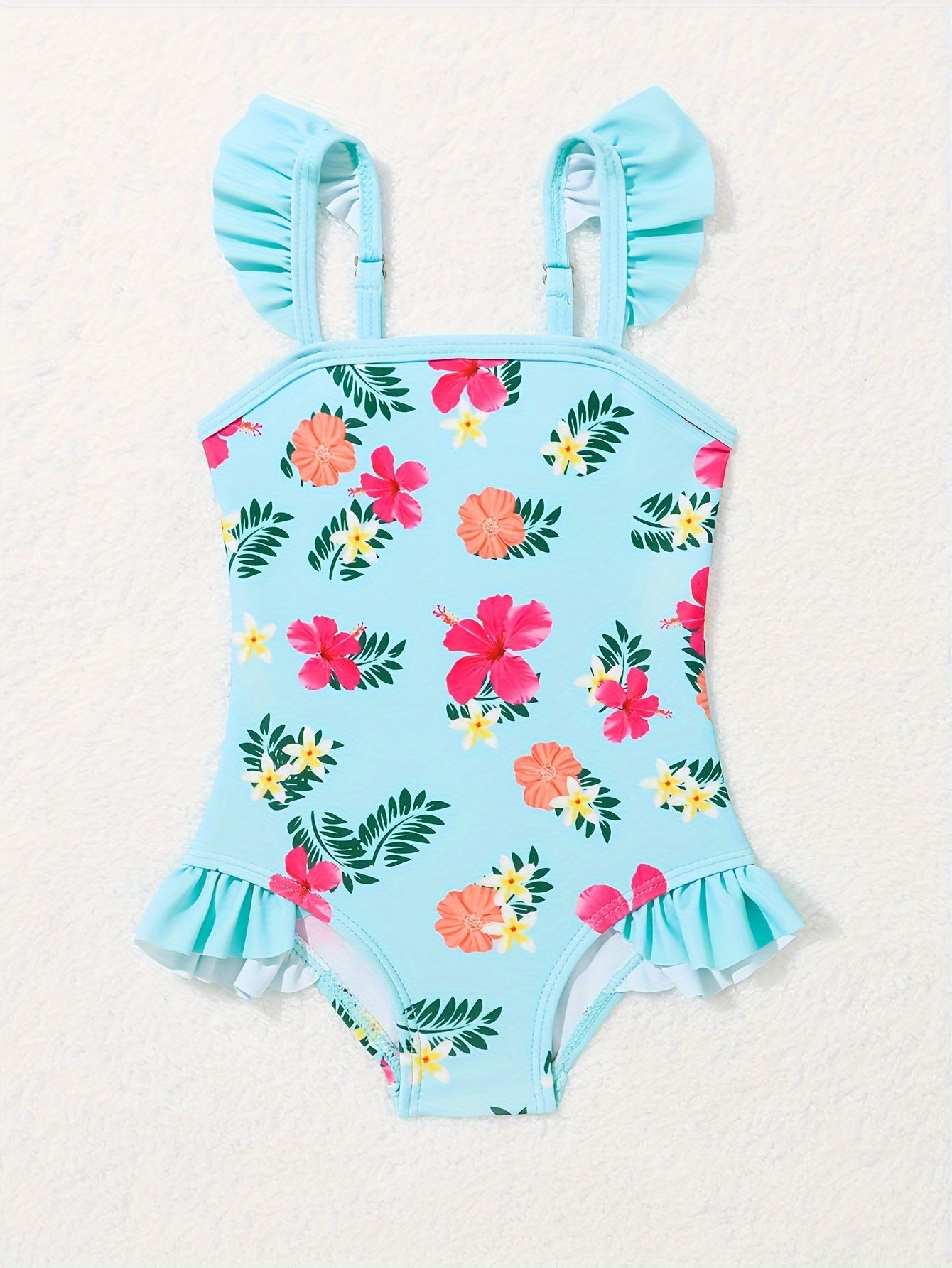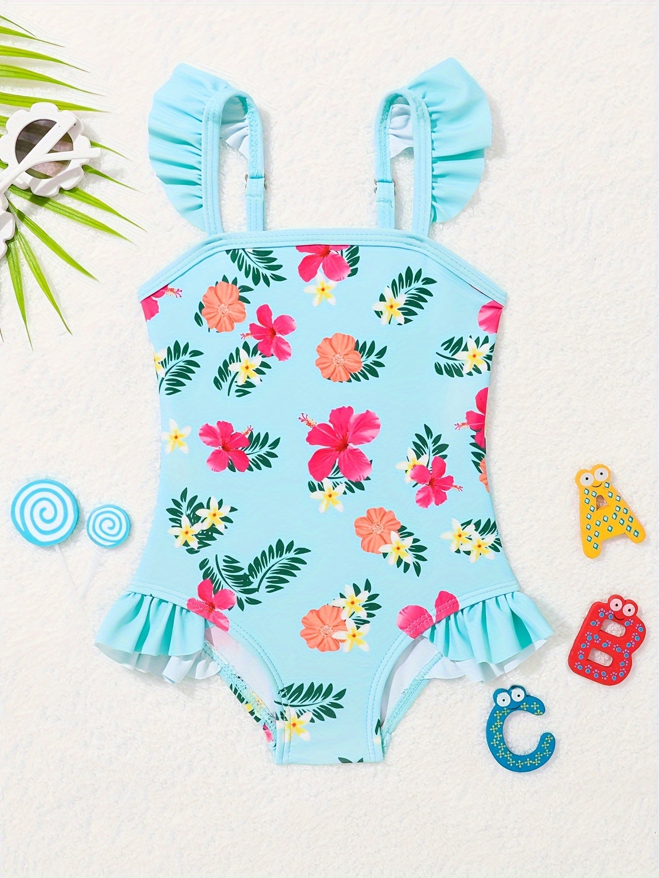 Qizlar uchun sevimli ananas naqshli bir qismli suzish kiyimi, tez quriydigan, cho'ziluvchan polyesterdan tayyorlangan, ruffle detali, bolalar uchun yelkasiz dizayn.