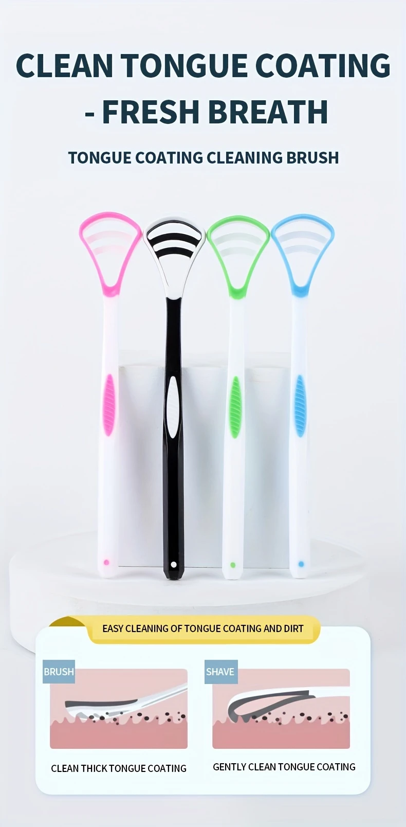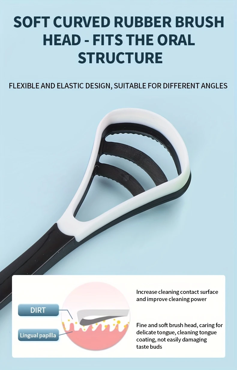 Kattalar uchun ikki tomonlama silikon tilni tozalash uchun C-shaklidagi dizaynga ega