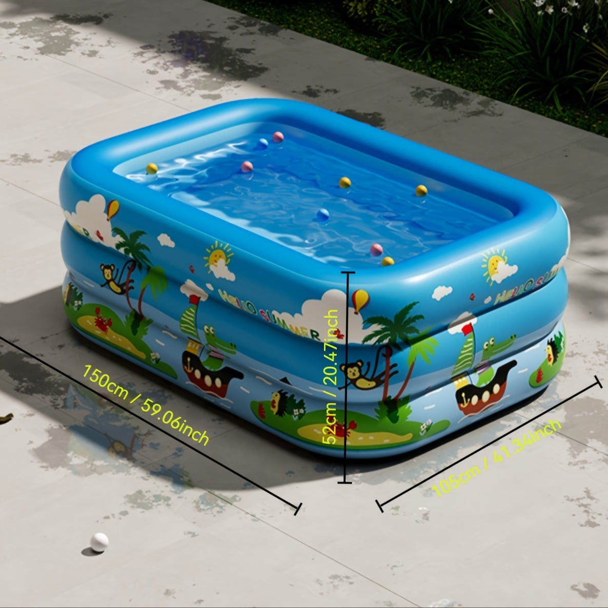 Yoshlar uchun yelkamli PVC havzasi, ichki va tashqi foydalanish uchun 150x105x52cm, bir nechta komponentlar bilan