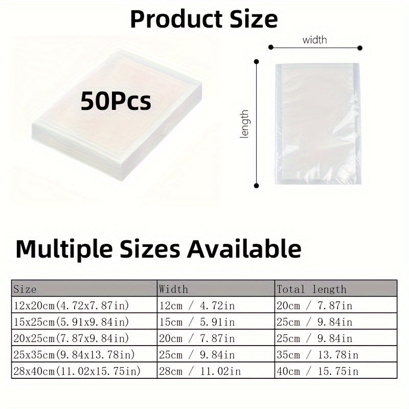 Vakuum yopishqoq sumkalar 50 ta paket BPA-bezak, tijorat darajasi, suv o'tkazmaydigan oziq-ovqat saqlash