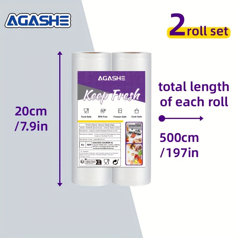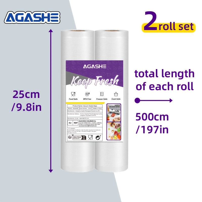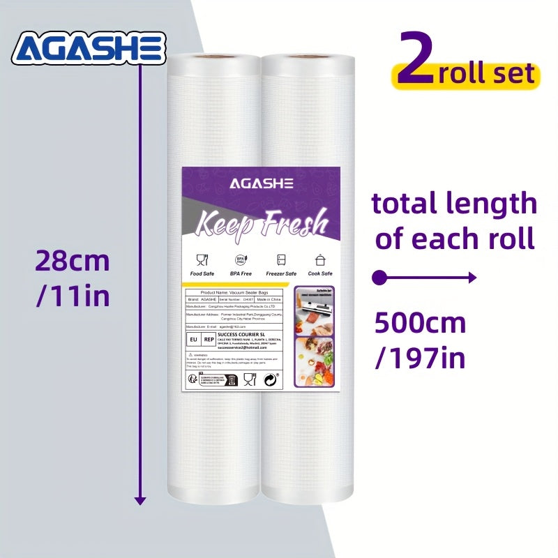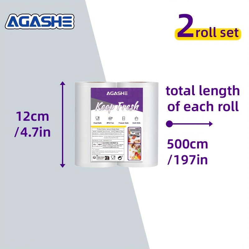 Vakuum yopishtiruvchi rulonlar 2 ta paket 500cm BPA-siz, yirtiqlarga chidamli oziq-ovqat saqlash