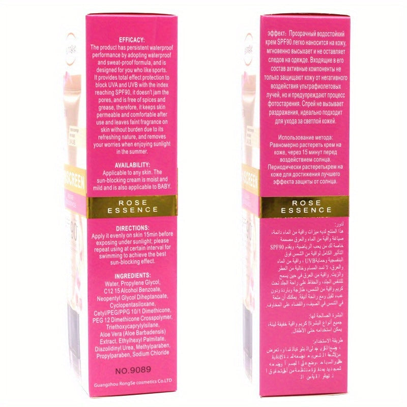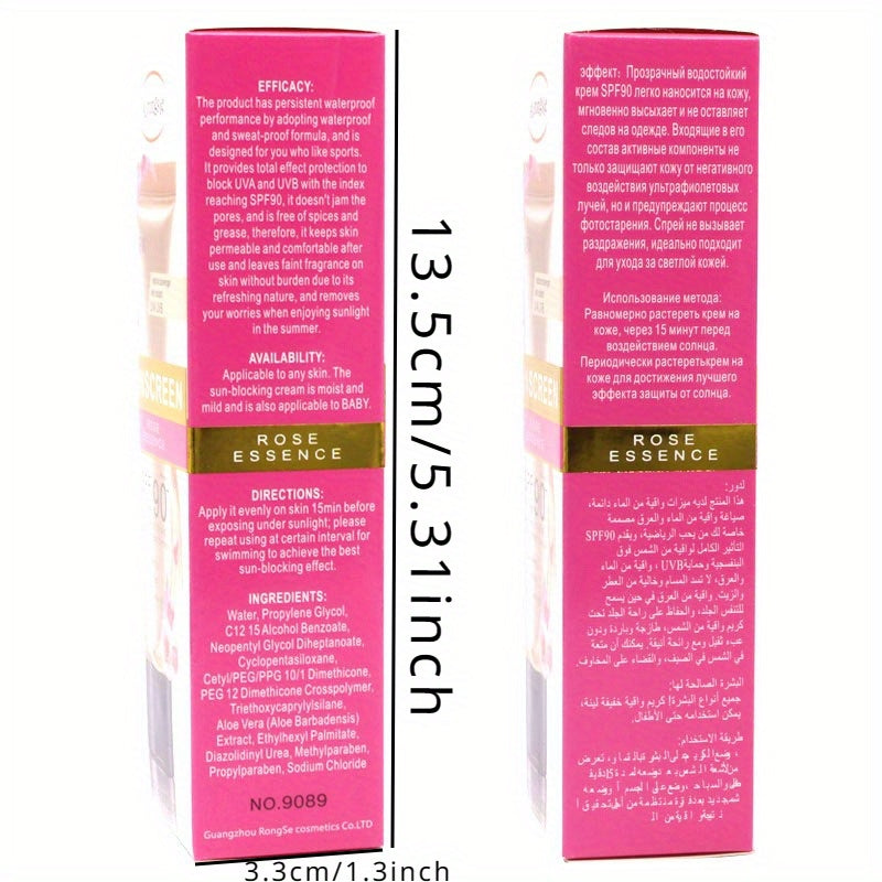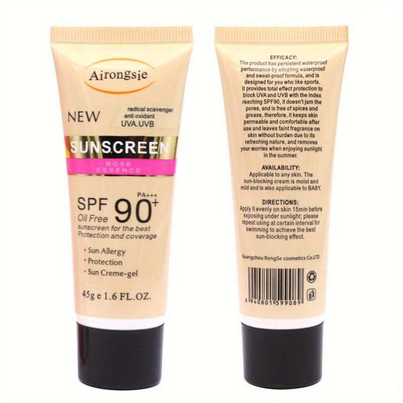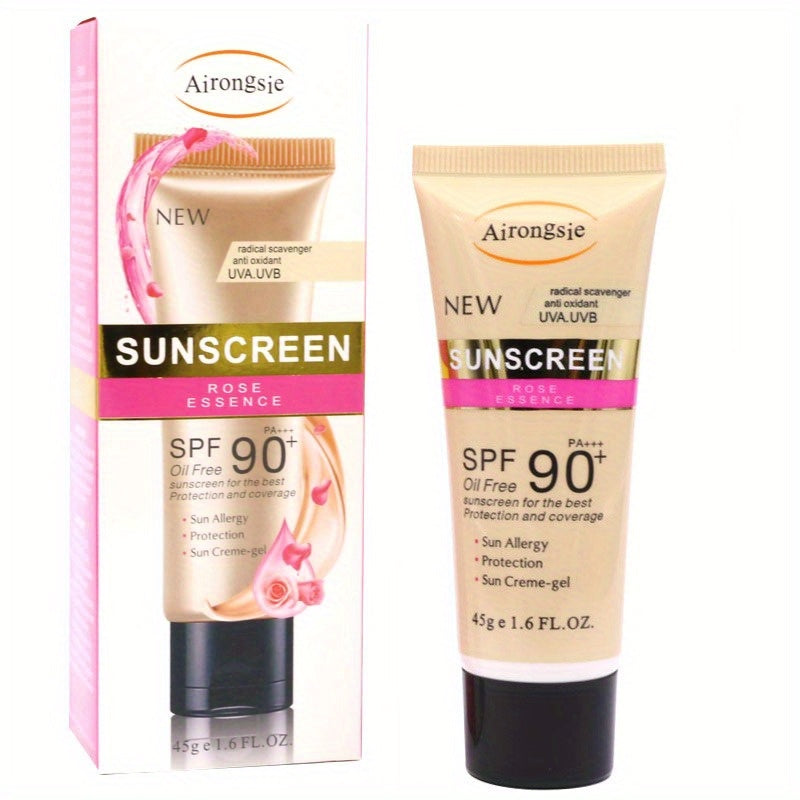 Airongsie namlantiruvchi quyoshdan himoya kremi, atirgul ekstrakti bilan - SPF 90, suv o'tkazmaydigan, yog'siz, barcha teri turlari uchun terini yorqinlashtiradi.