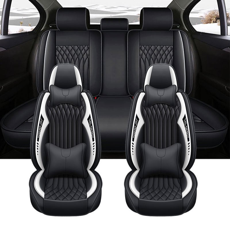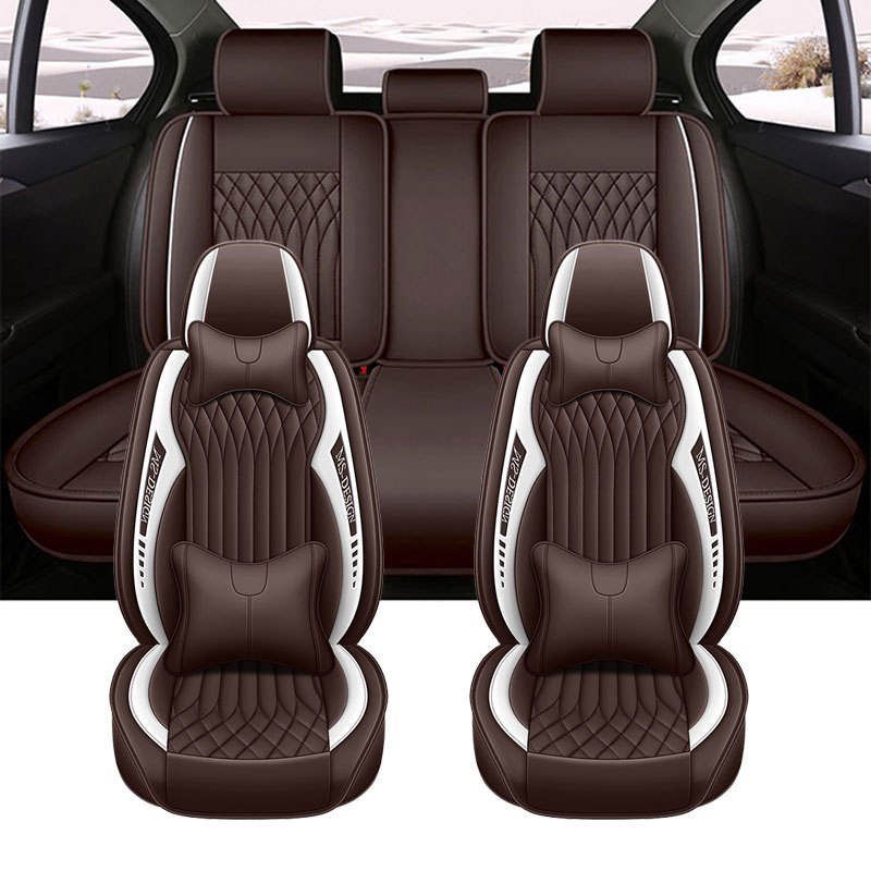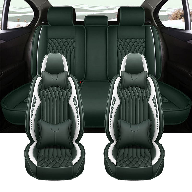 Barcha mavsumlar uchun sun'iy charm avtomobil o'rindiqlari qoplamalari, sirpanmaydigan, chizishga qarshi, dengiz xoki ko'k, 5 o'rinli