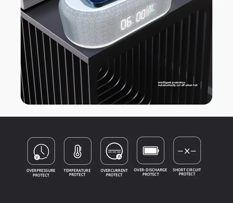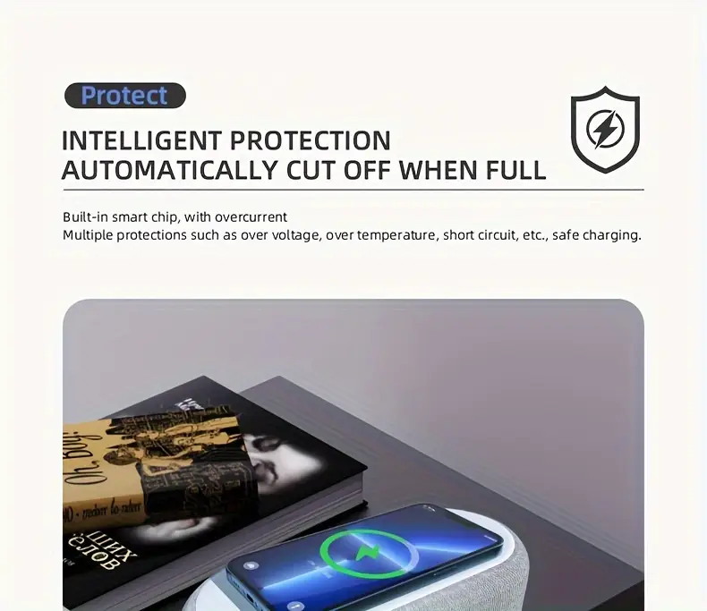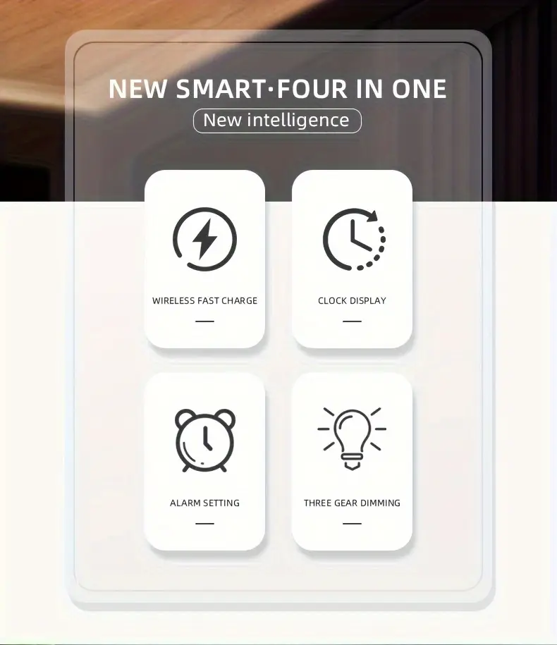 ALYNIC Simsiz Zaryadlovchi Padi, Signalizatsiya, Chiroq, Kechki Chiroq, Soat, Termometr bilan iPhone uchun, Tez Zaryadlash Dock, USB Type-C, Qayta zaryadlanmaydigan Tugma Batareya