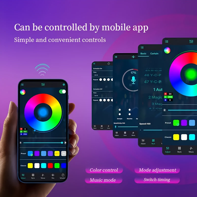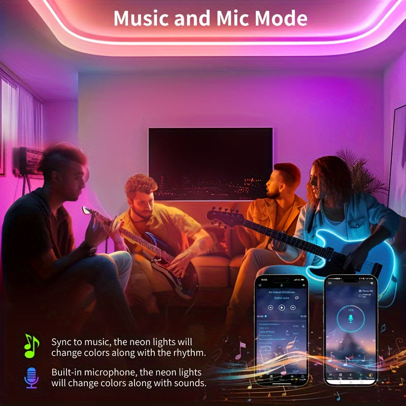 AMill LED Neon Lenta Yoritgichlari - 100.58/298.7/499.87sm, Musiqa Sinxronizatsiyasi, Ilova Bilan Boshqarish, Ichki/Tashqi Dekor uchun Moslashuvchan RGB+IC Yoritish, Bayramlar, USB Bilan Quvvatlanadi