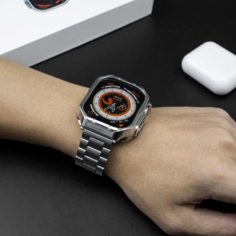 Apple iWatch S7/S8/S9 zanglamas po'latdan yasalgan kamar, TPU himoya qopqog'i, egiluvchan teshik va turli o'lchamlarda mavjud.
