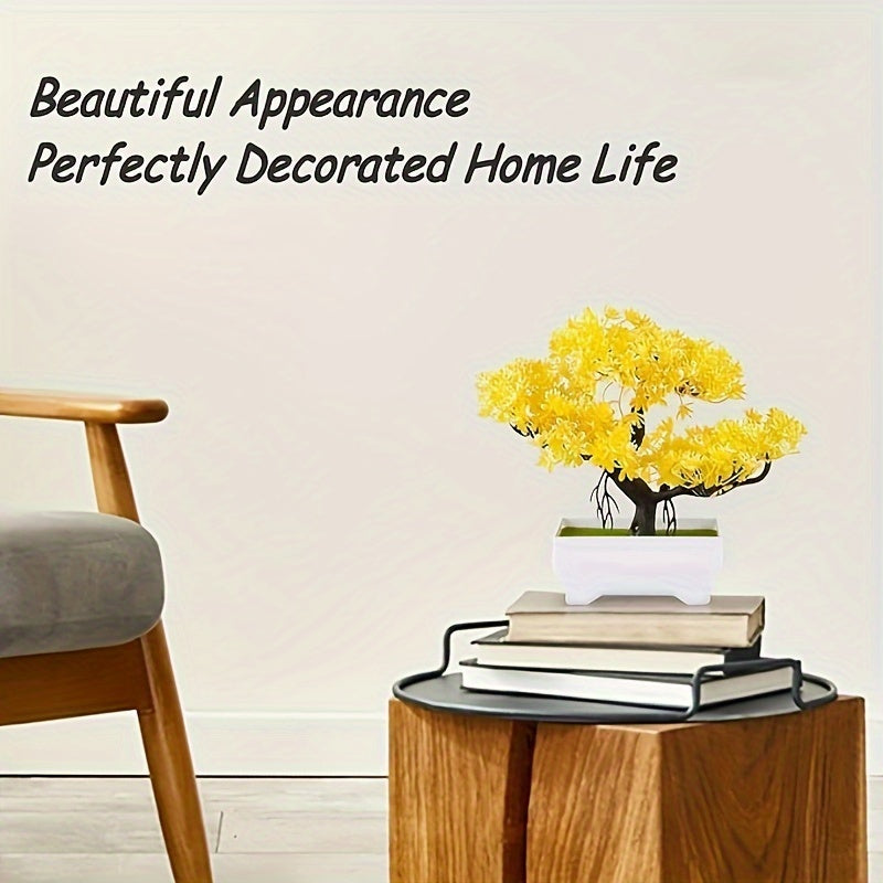 Uy ofis dekoratsiyasi va sovgʻalar uchun plastik sement pot bilan sunʼiy bonsai daraxti