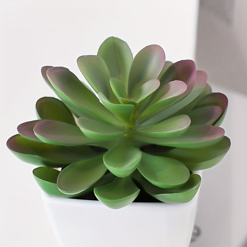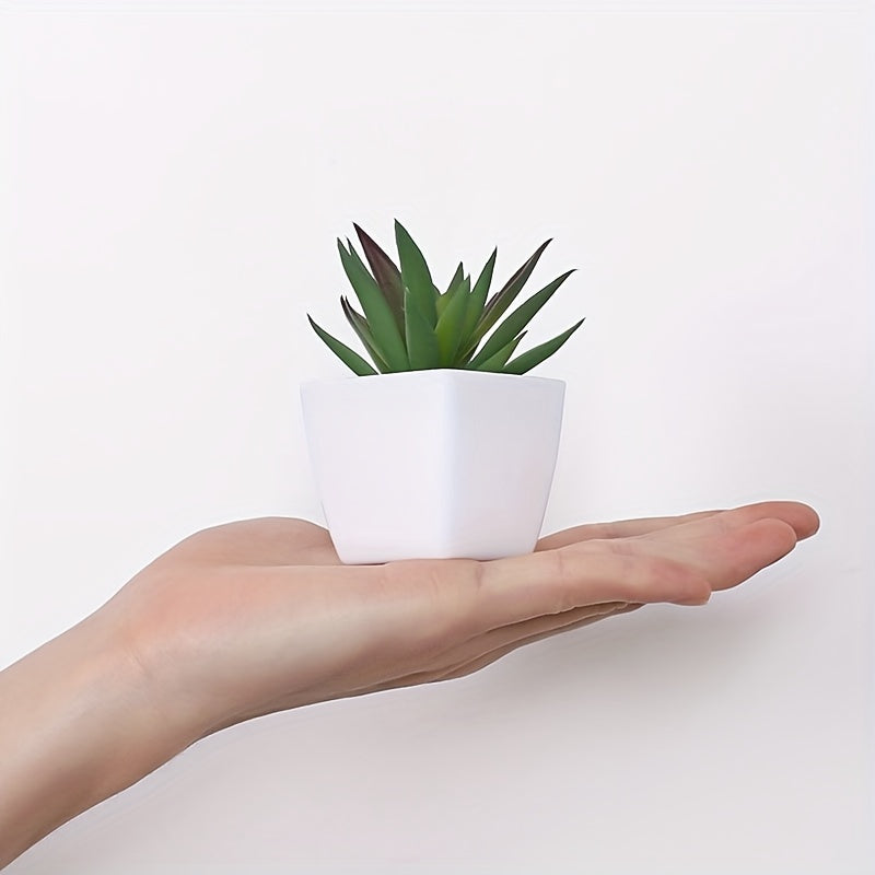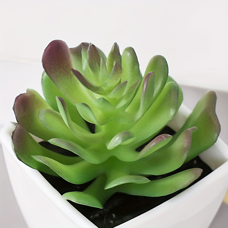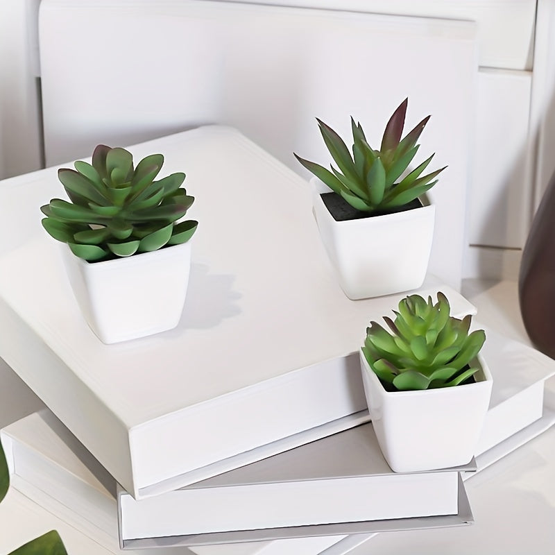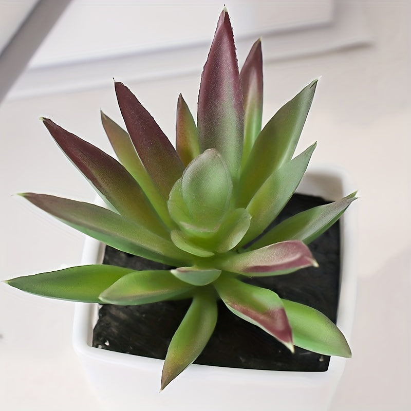 Ichki bezak uchun kichik idishlarda sun'iy sukkulentlar ofis xonasi o'simliklari