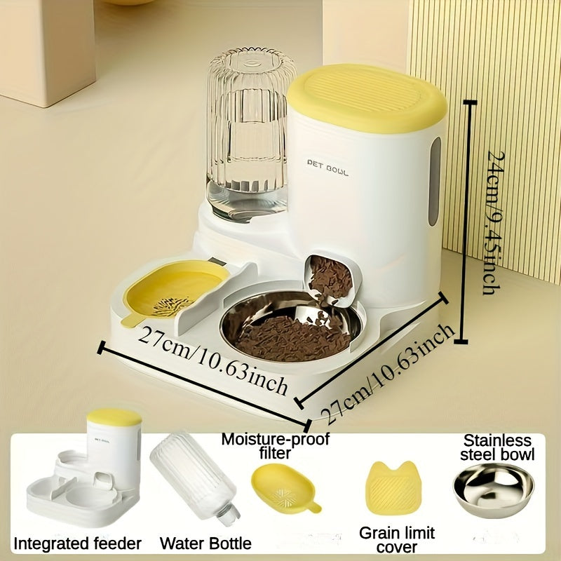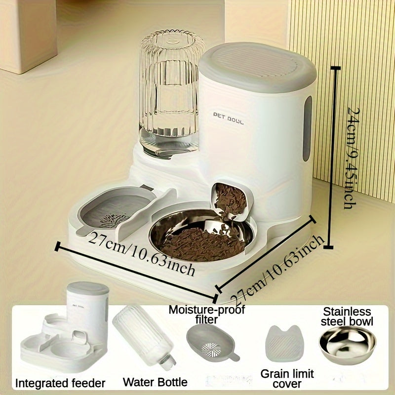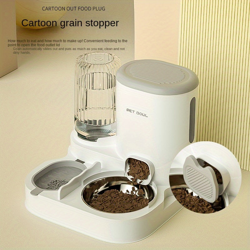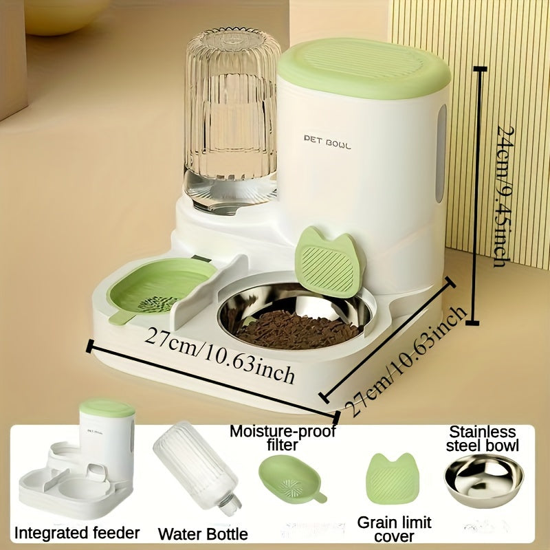 Avtomatik mushuk uchun oziqlantiruvchi va suv idishlari to'plami, ikki idishli, to'kilmaslik uchun siphon, plastmassa