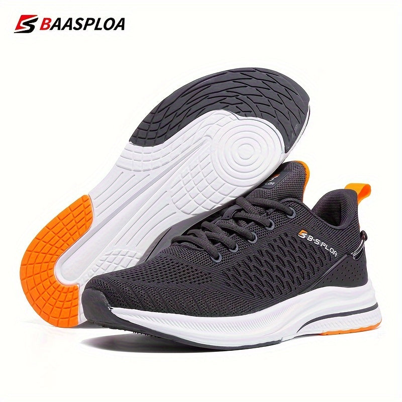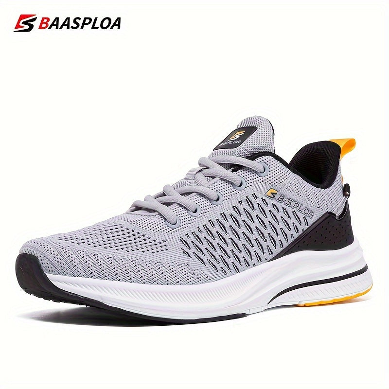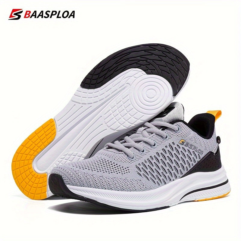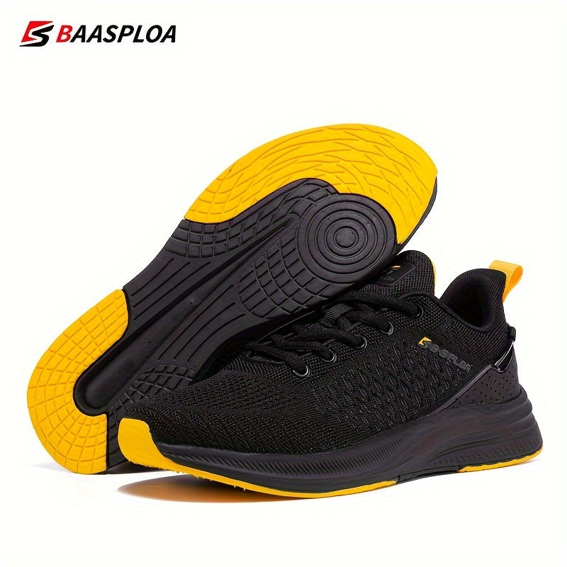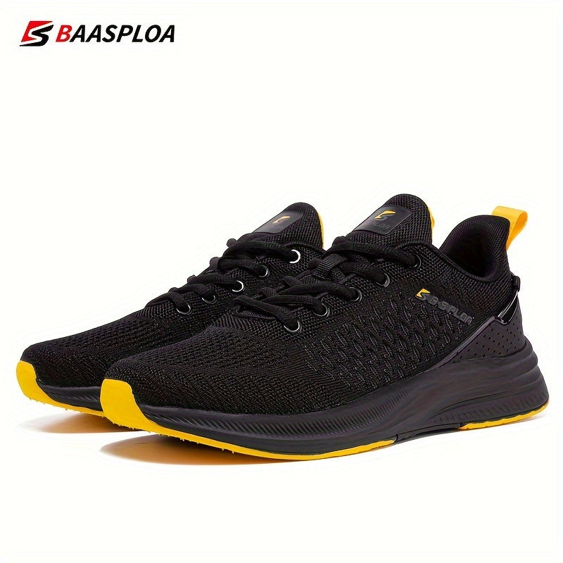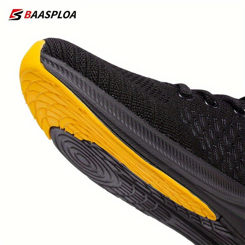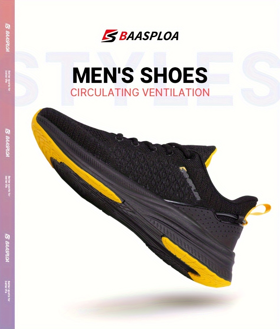BAASPLOA erkaklar uchun qora va sariq yugurish poyafzallari, nafas oladigan to'r va MD/TPR taglik bilan kundalik va sport maqsadlari uchun.