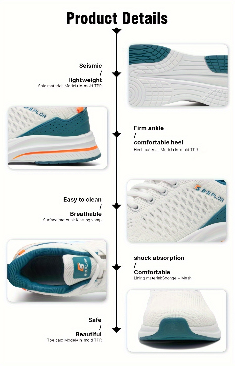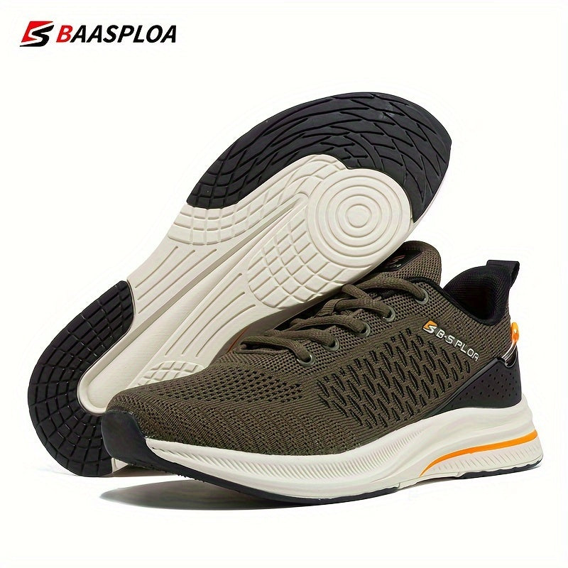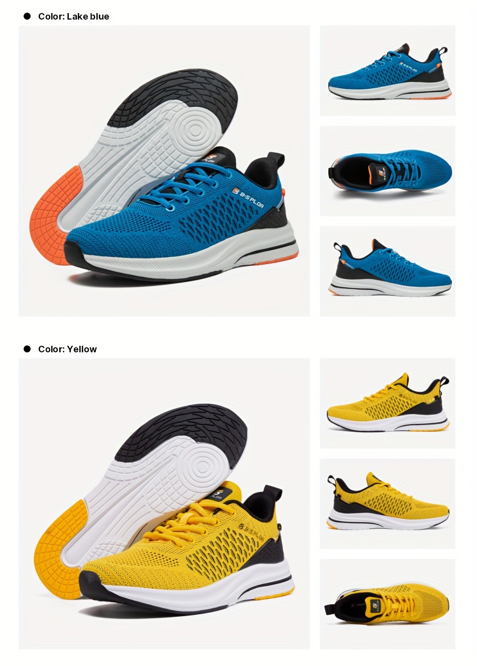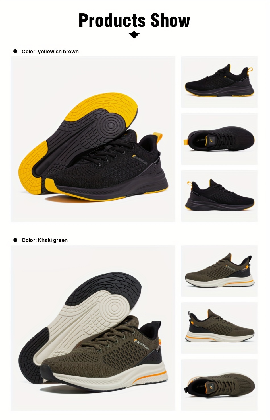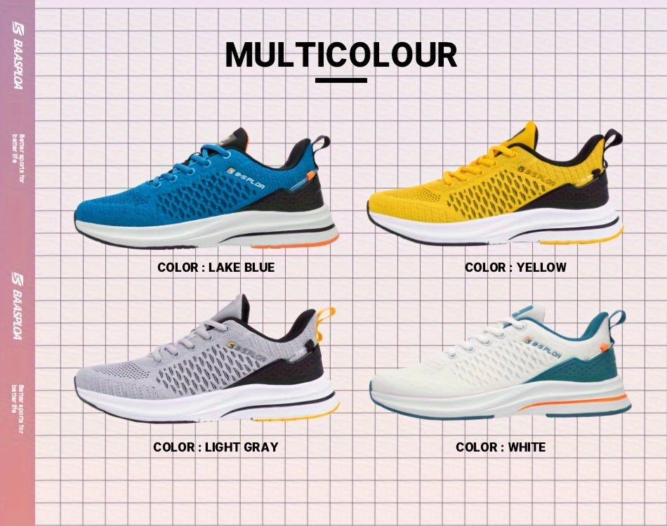 BAASPLOA erkaklar uchun qora va sariq yugurish poyafzallari, nafas oladigan to'r va MD/TPR taglik bilan kundalik va sport maqsadlari uchun.