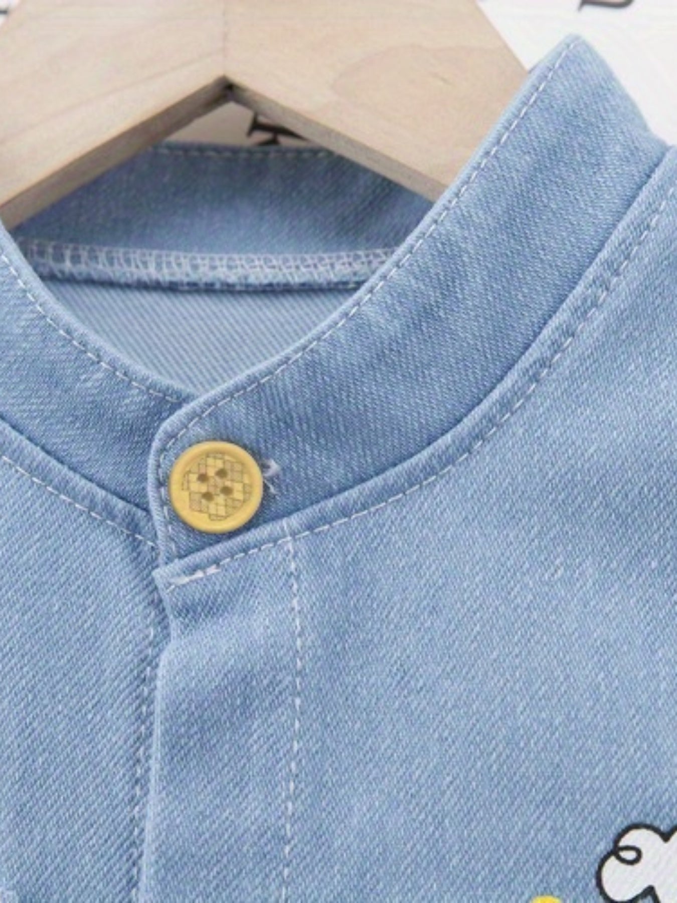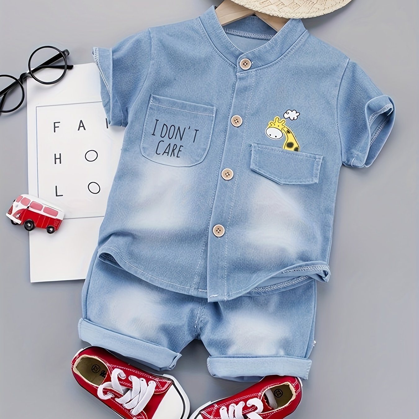 Kichkina erkaklar yozgi denim kiyimlari qisqa qoʻlqopli multfilm hayvonlari naqshli oddiy kechki kiyimlar