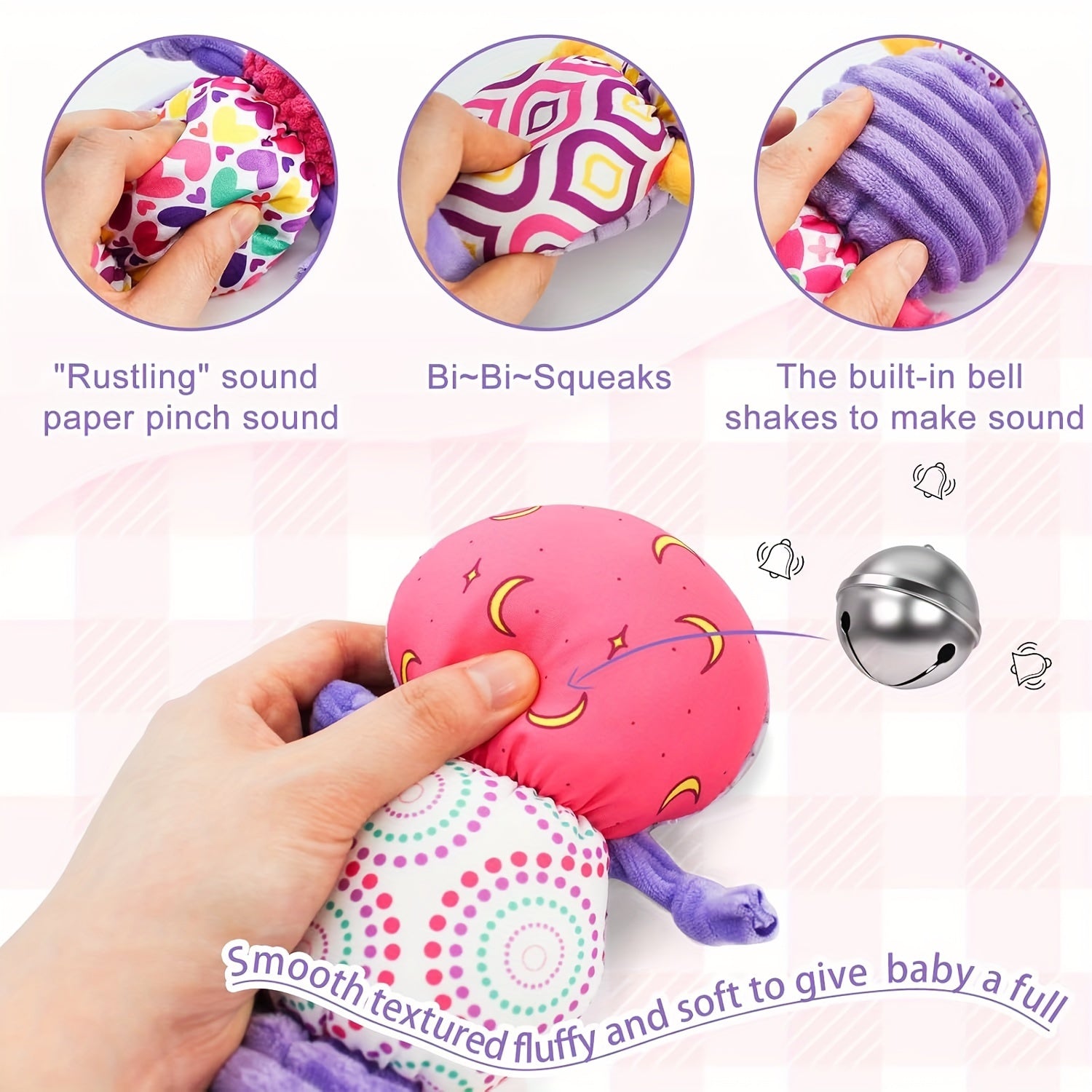 Kichkina yumshoq o'yinchoq, 0+ oylik chaqaloqlar uchun, ko'p rangli polyester, chayqash va krinkle sezgir o'yinchoq
