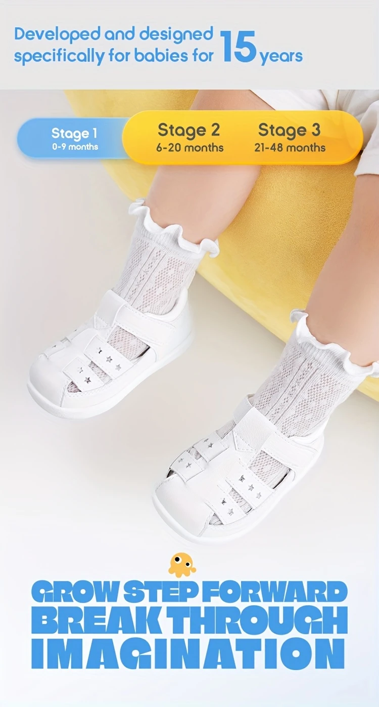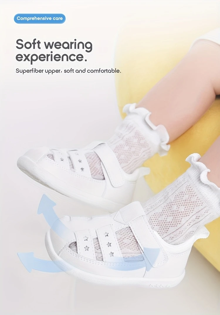Balabala Bolalar Sandallari - Yengil, Oq Yulduz Dizayni, Yumshoq Taglik, Qisqich va Lenta Yopilishi, Bolalar uchun Yozgi Yurish Poyabzali