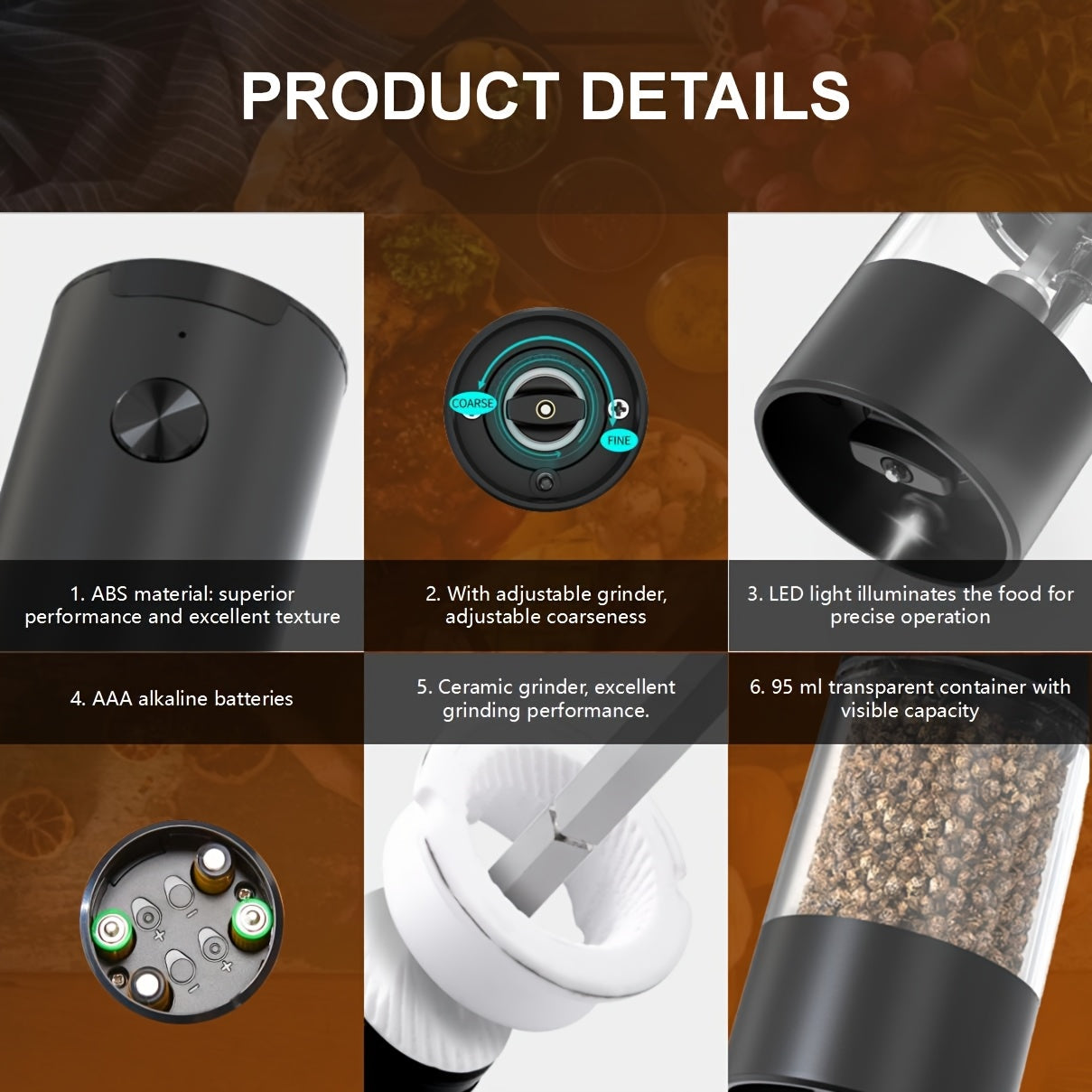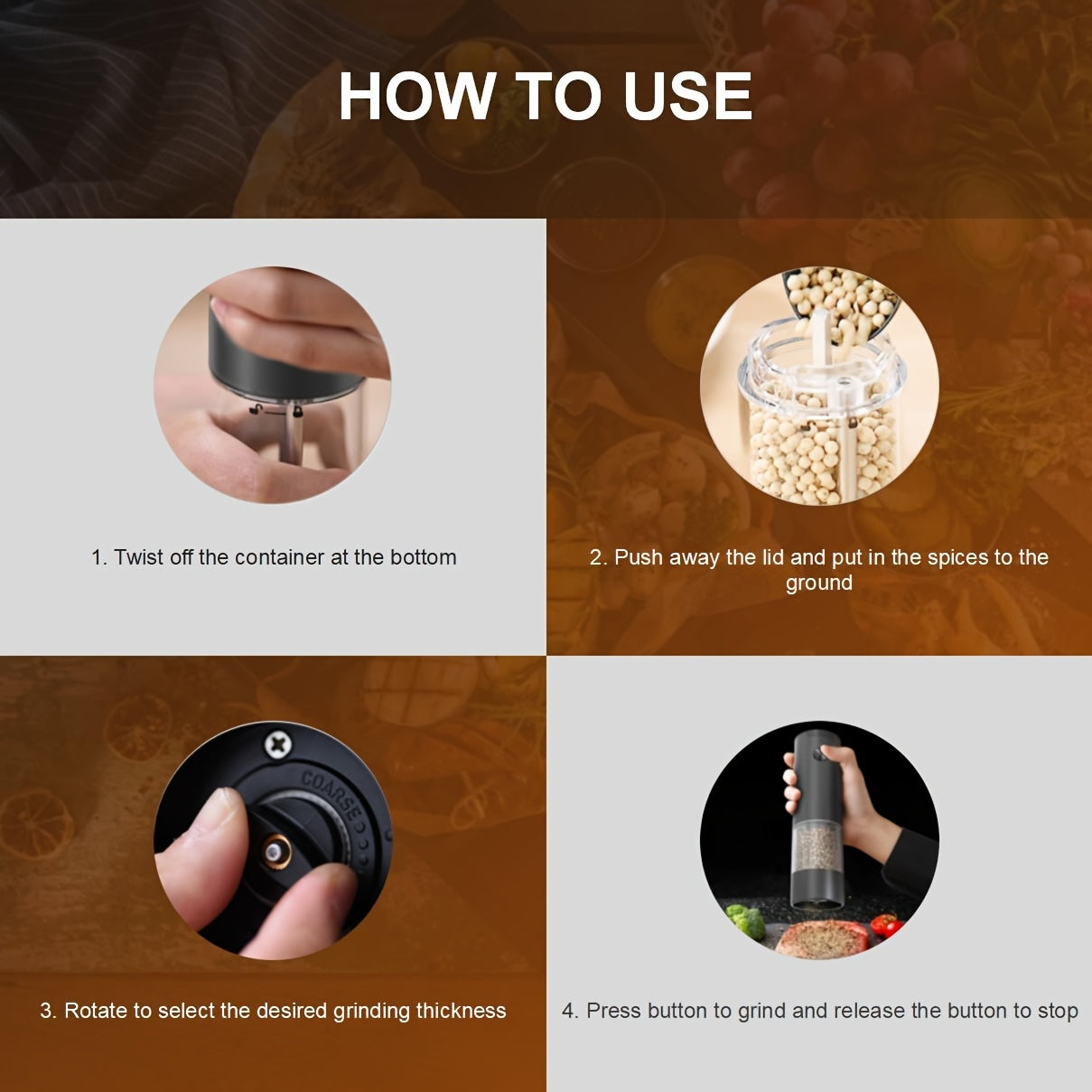 Batareya bilan ishlaydigan ziravorlarni maydalash uchun maydalagich, sozlanadigan qattiqlik, shaffof konteyner, bitta bosish bilan maydalash