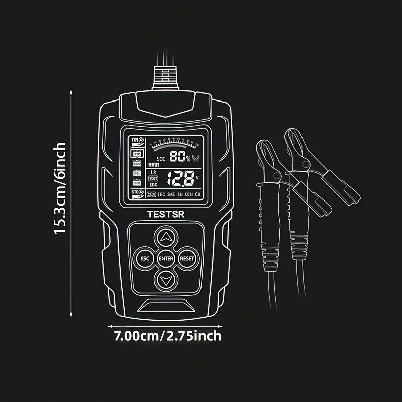 12v va 24v batareyalar uchun batareya tester, nam, jel, muhrlangan qo'rg'oshin-kislota, to'ldirilgan, kengaytirilgan to'ldirilgan va AGM kabi turli xil turlarga mos keladi.