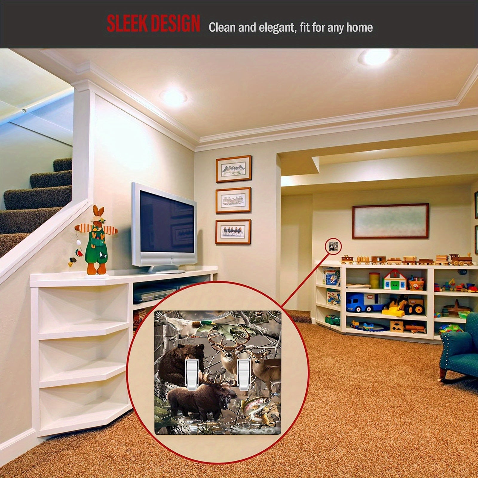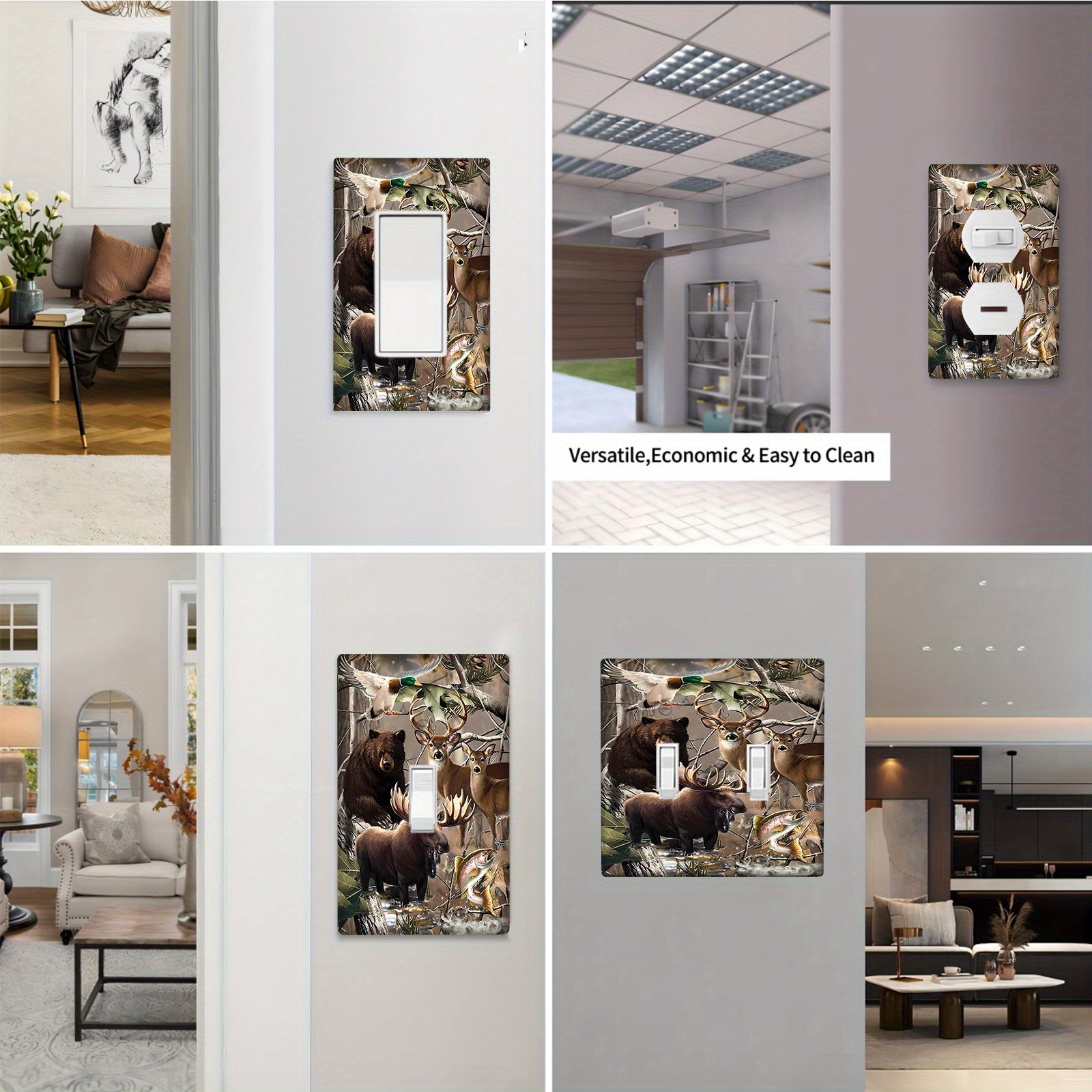 "Bear Forest Deer Light Switch Cover" sindirilmaydigan polykarbonatdan tayyorlangan, ichki va tashqi foydalanish uchun mos.