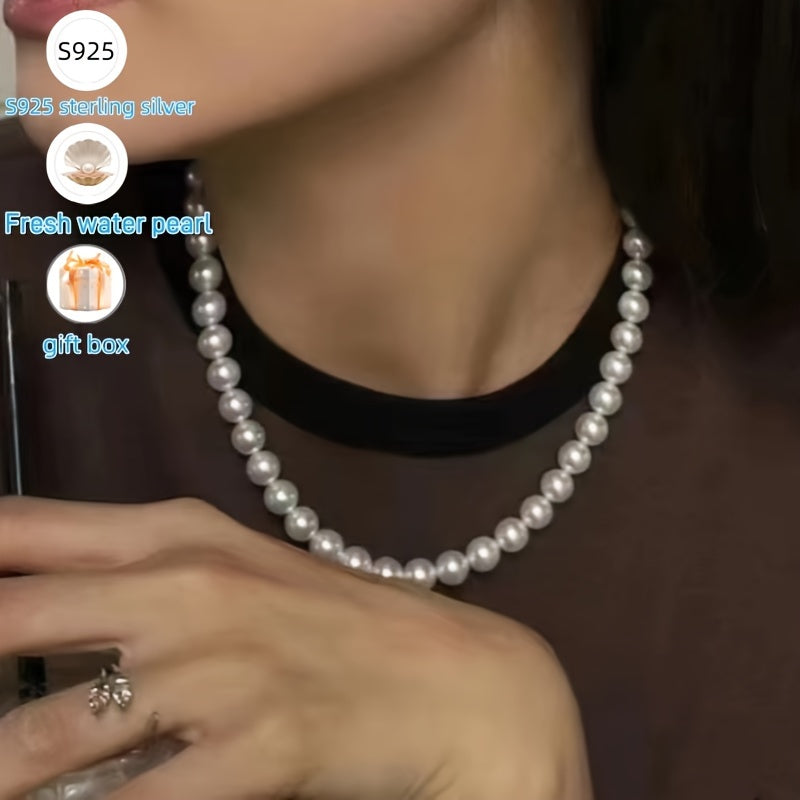 Chiroyli Shirin Suv Marvaridlar Bilaguzuk - Mukammal Yassi 6-7mm Marvaridlar, Qimmatbaho Kumush, Boy va Moslashuvchan, Nafis Sovg'a Qutisi Bilan, Yuqori Darajadagi Hashamat, Yengil, lekin Murakkab, Umumiy Og'irligi 28.3g