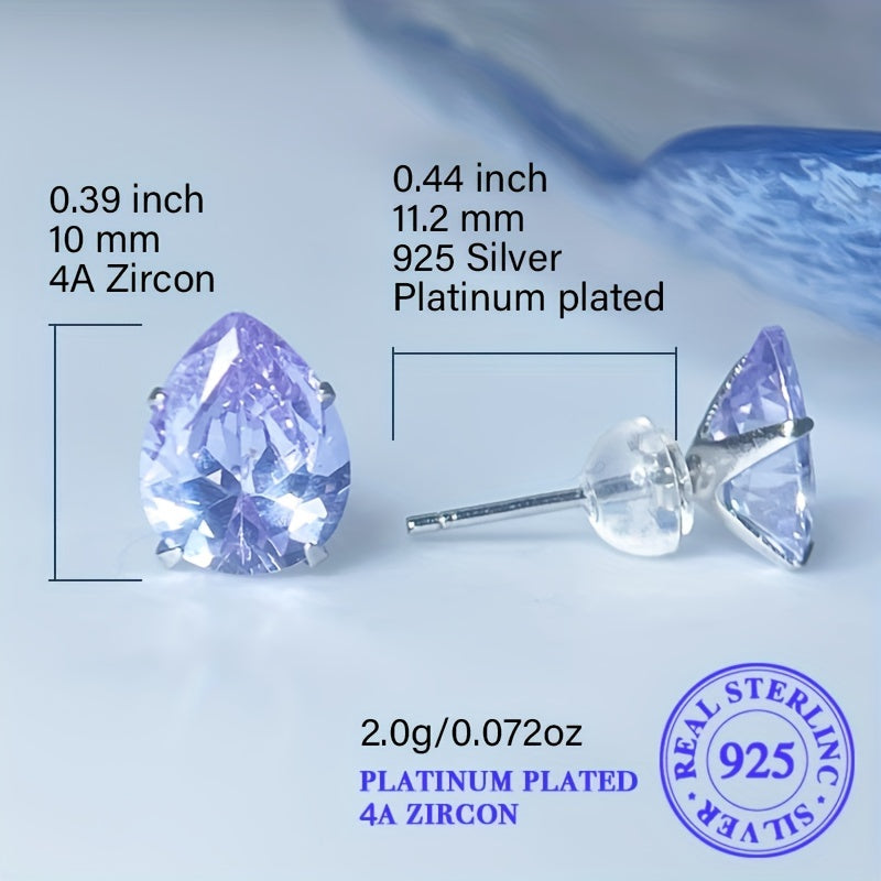 Chiroyli stud qoshniqlar, murakkab suv tomchisi dizayni bilan, 925 sterling kumushdan tayyorlangan. Ushbu gippoallergen qoshniqlar ajoyib ko'k zirkoniya bilan bezatilgan, to'ylar va partiyalar uchun mukammal. Ayollar uchun ideal.