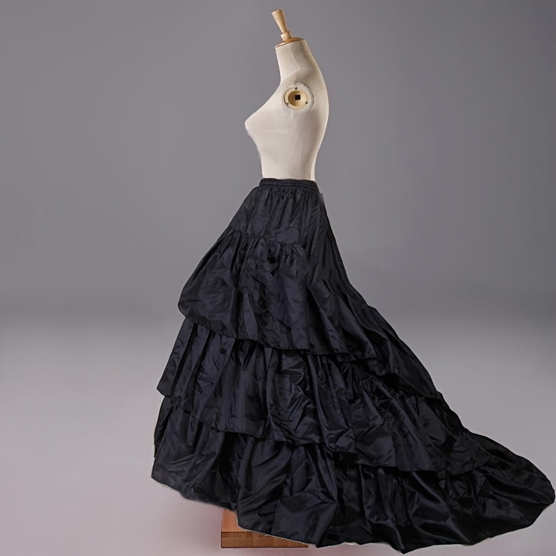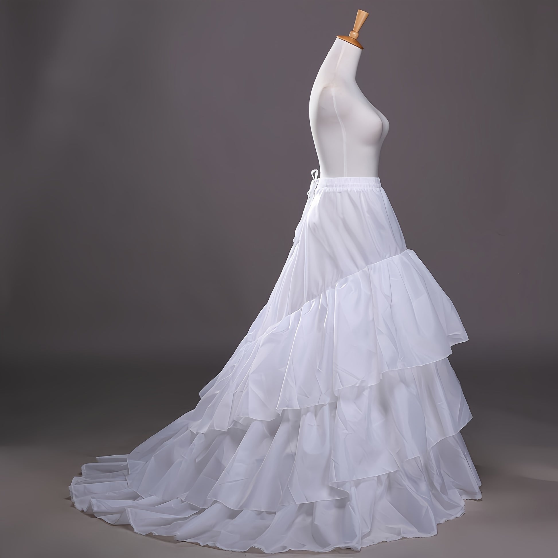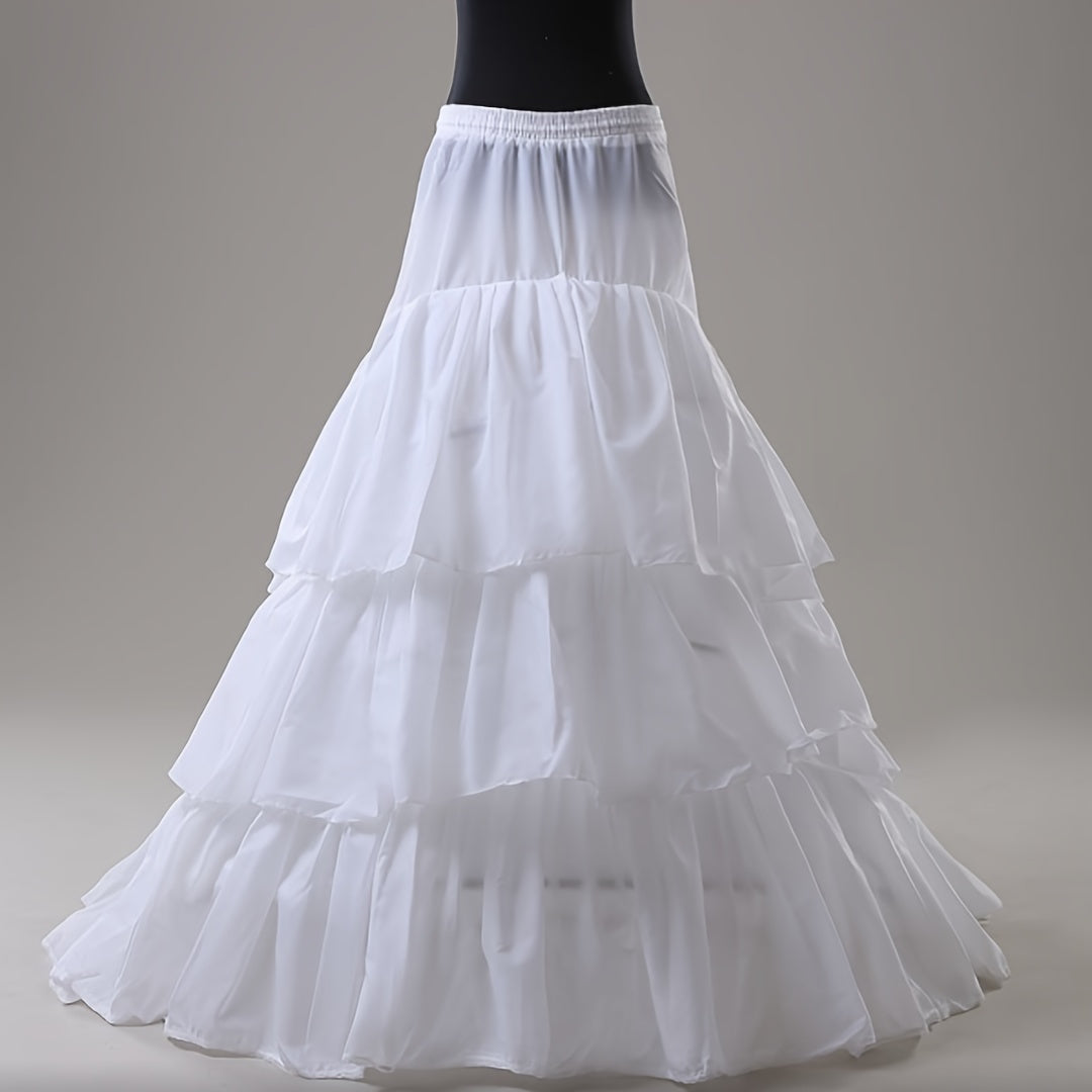 Oq 3-qavatli to'y yubkasi, sozlanadigan lentasi va nafis poyasi bilan, to'y va tadbirlar uchun