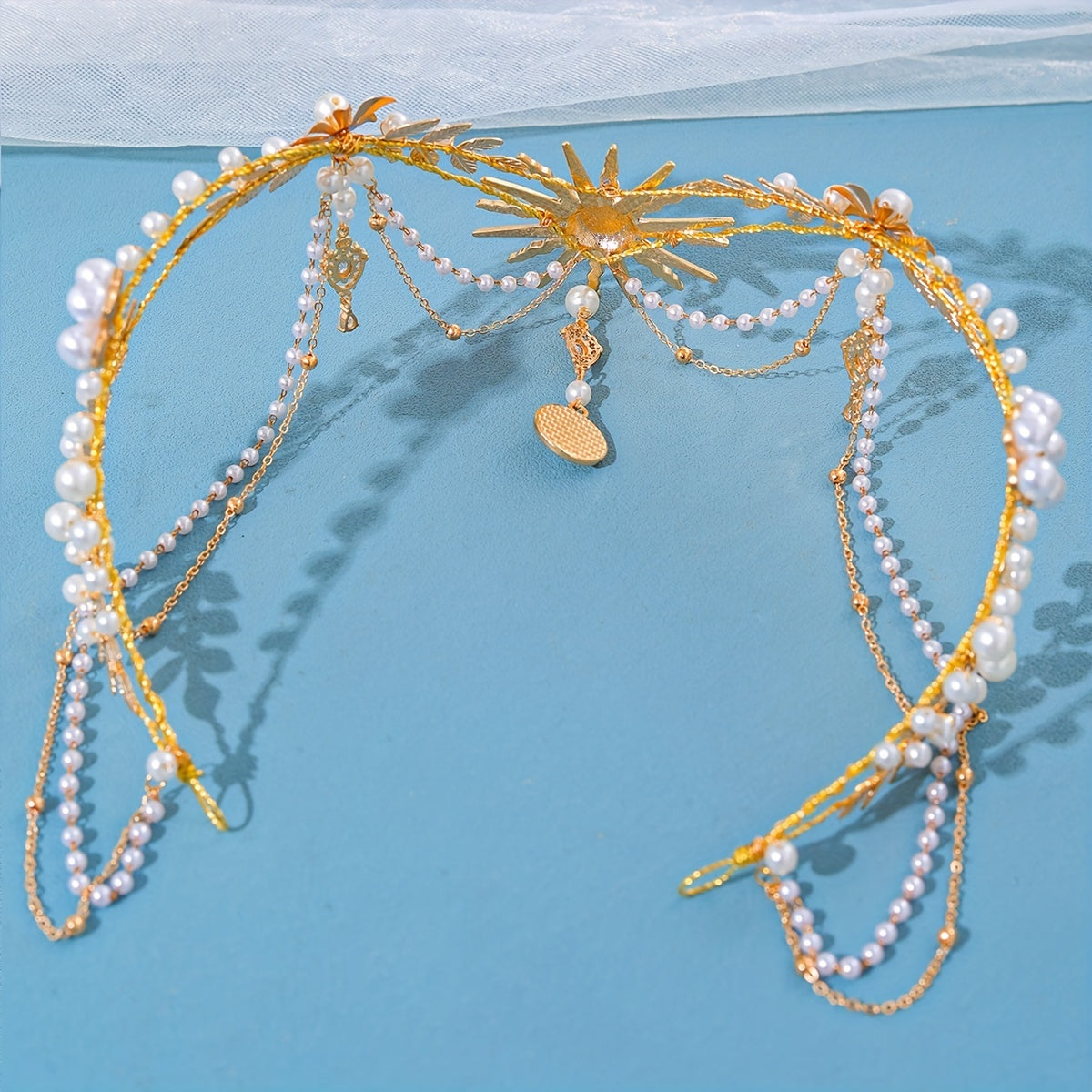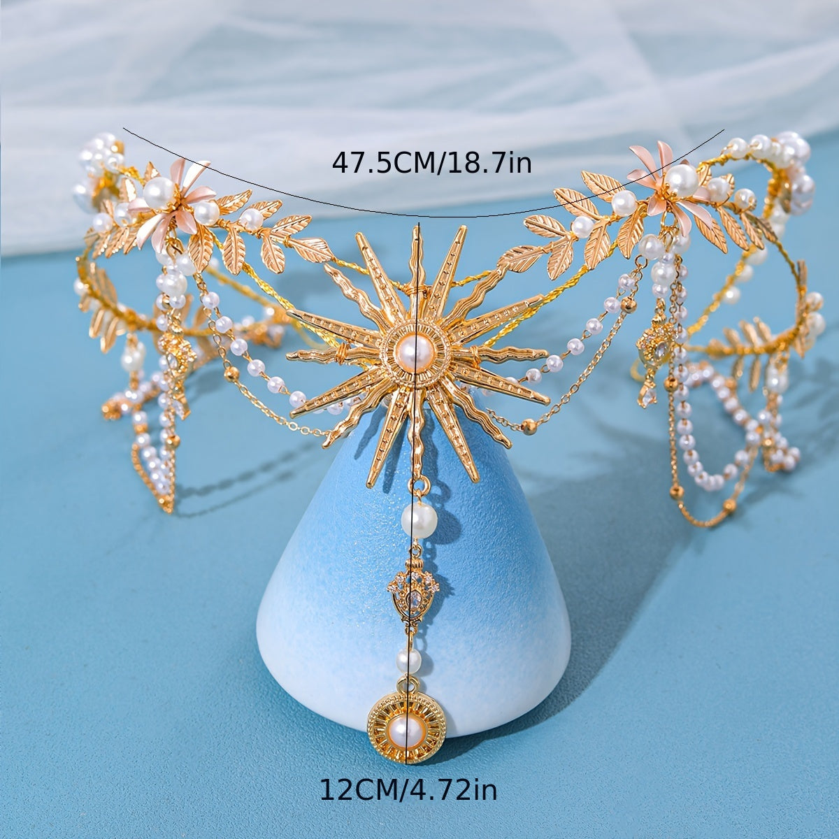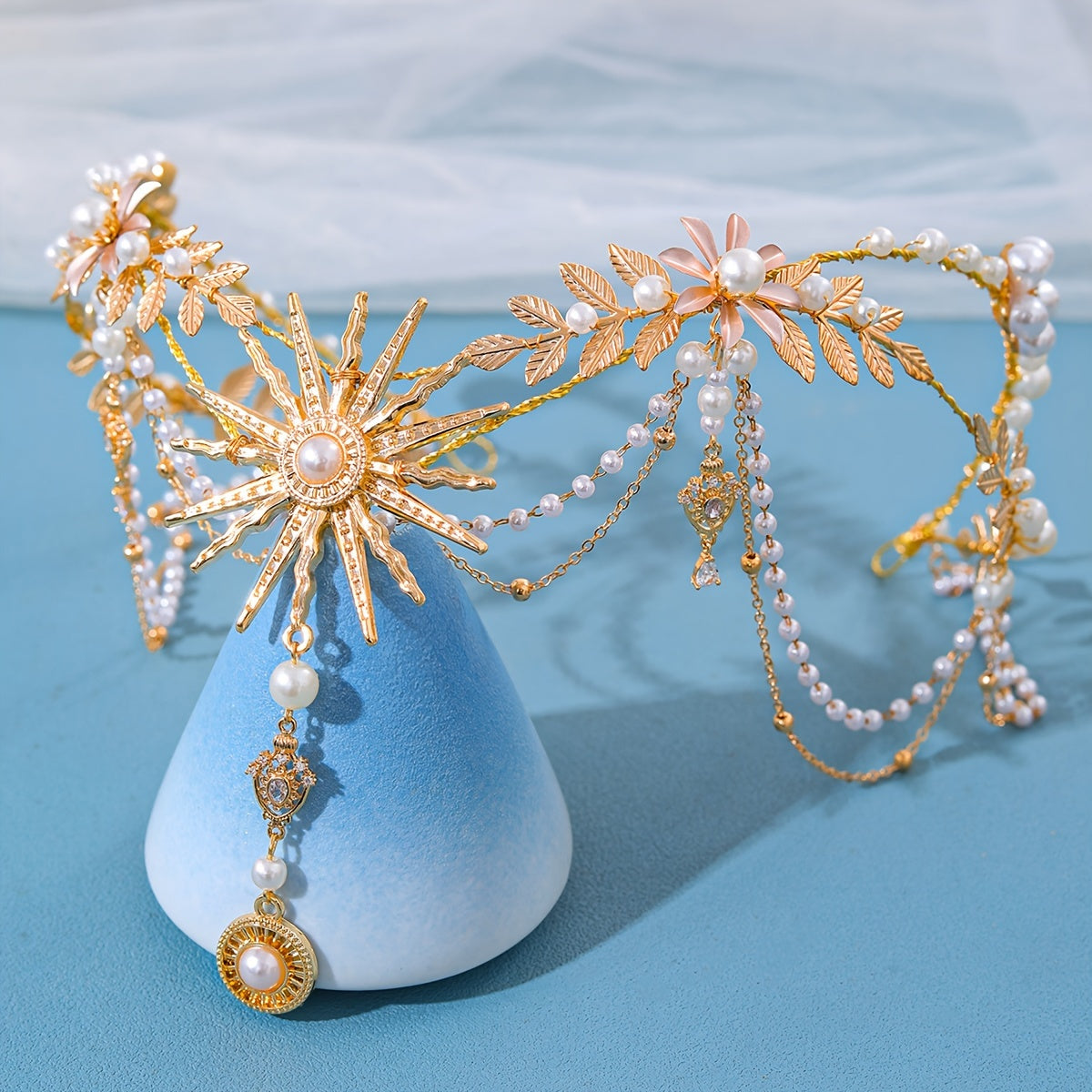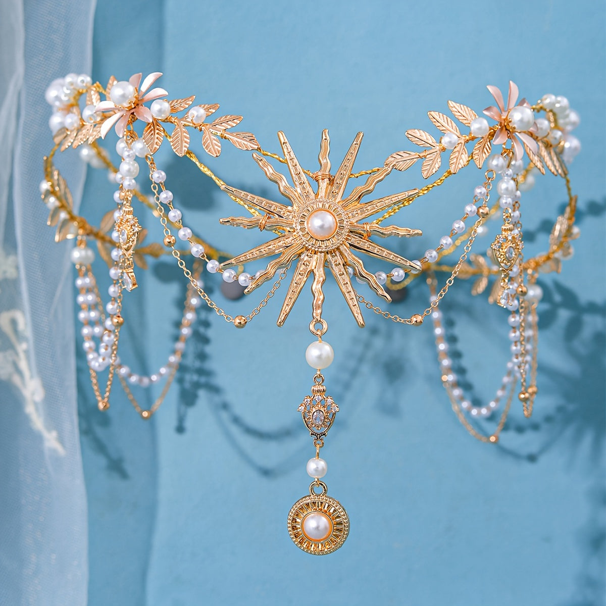 Qoʻlda tayyorlangan marjonli quyosh nuri bilan bezatilgan taqdirlar uchun quyosh gul va barg motivlari bilan taxt