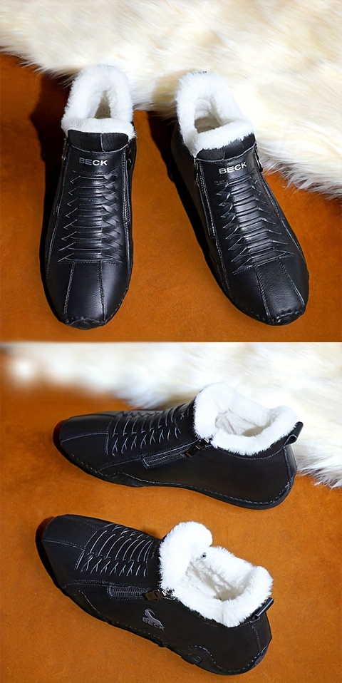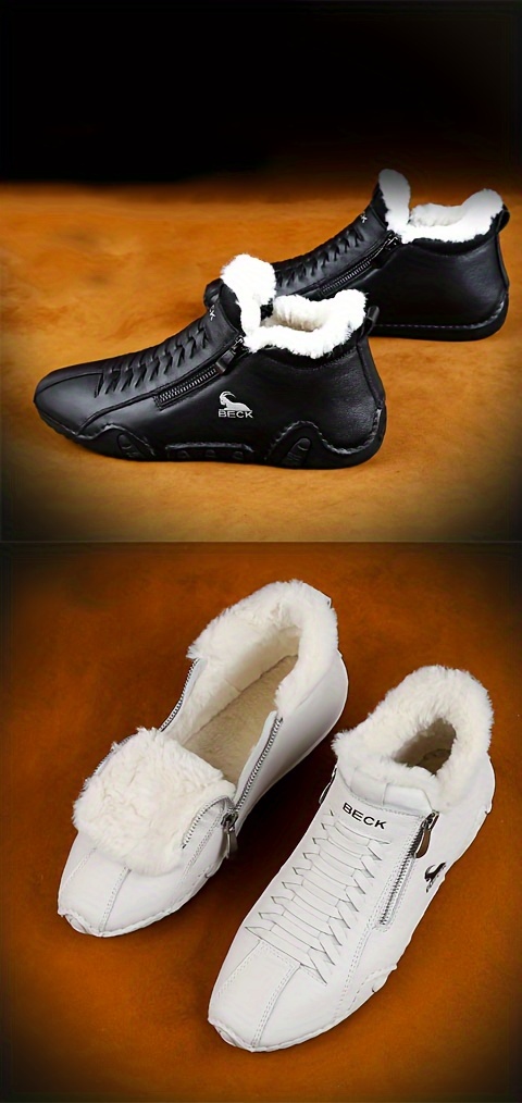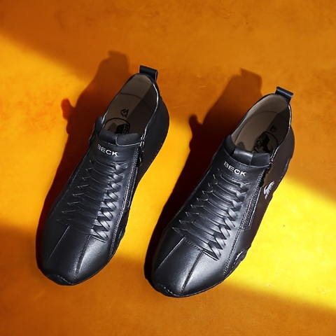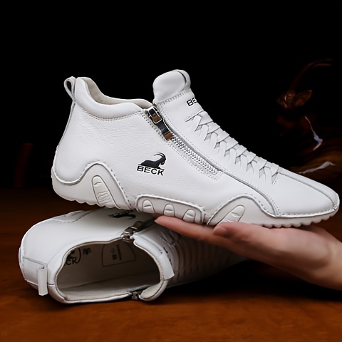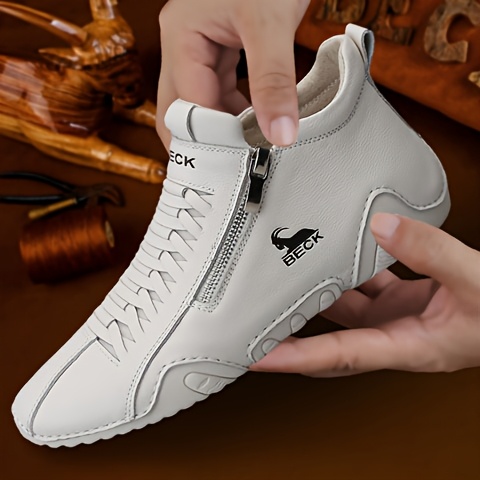 BECK Erkaklar uchun tasodifiy oyoq kiyimlari, yuqori sifatli charm tikuv, sirpanmaydigan kauchuk asos, fermuar yopilishi, tashqi faoliyatlar uchun cho'chqa terisi ichki qismi