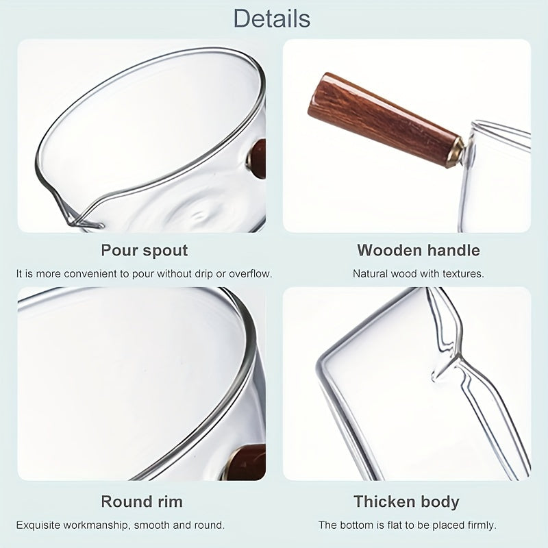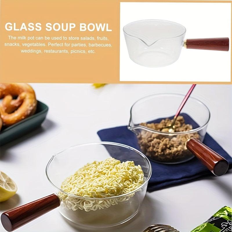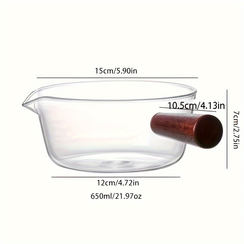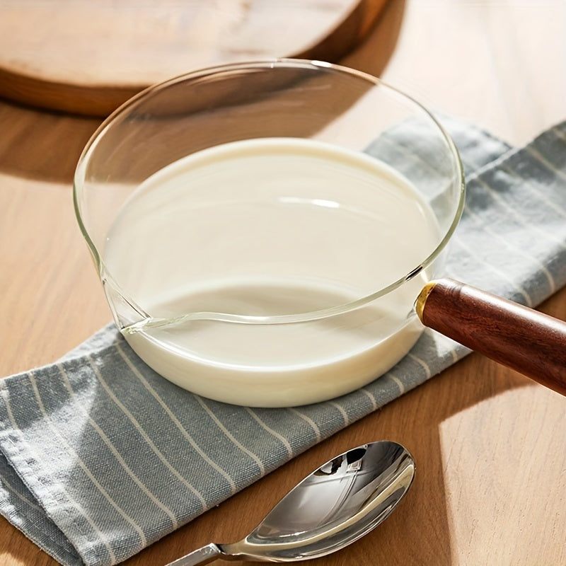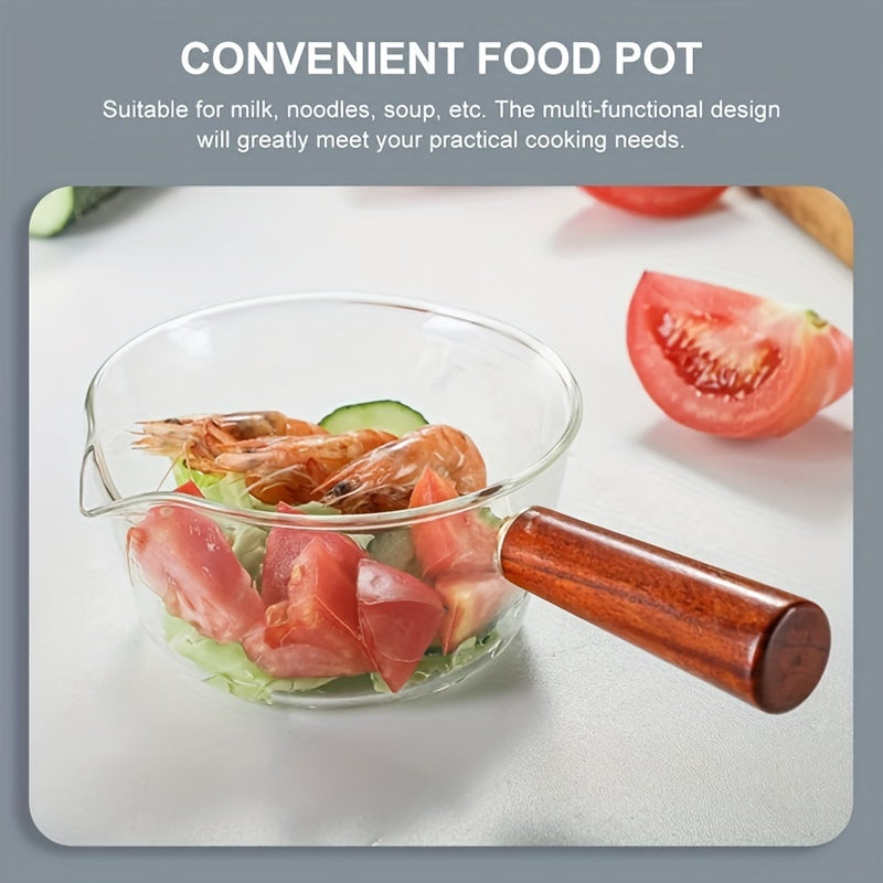 Qizil yog'och tutqichli shisha sut qozoni, yopishmaydigan qopqog' bilan, 450ml yoki 650ml