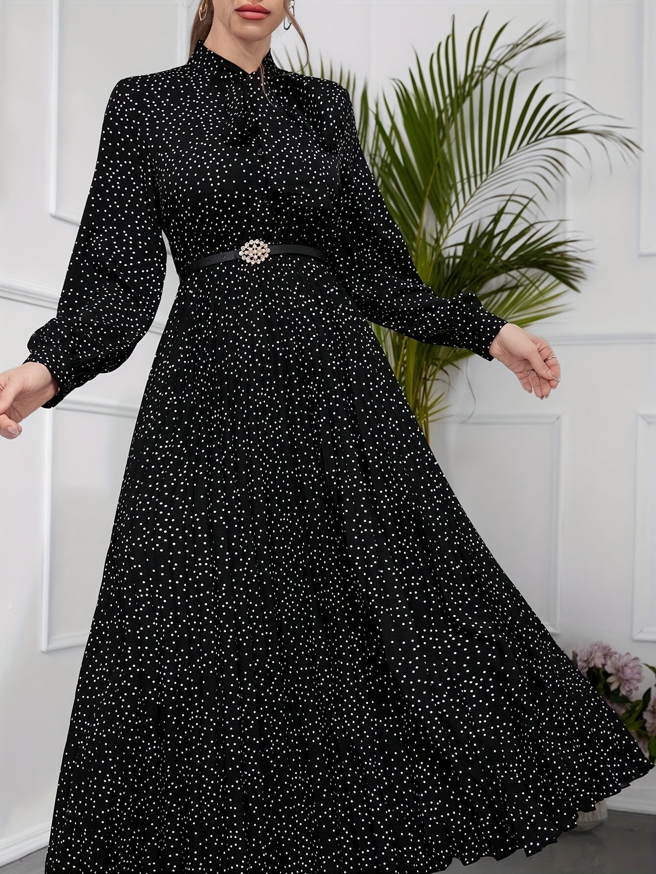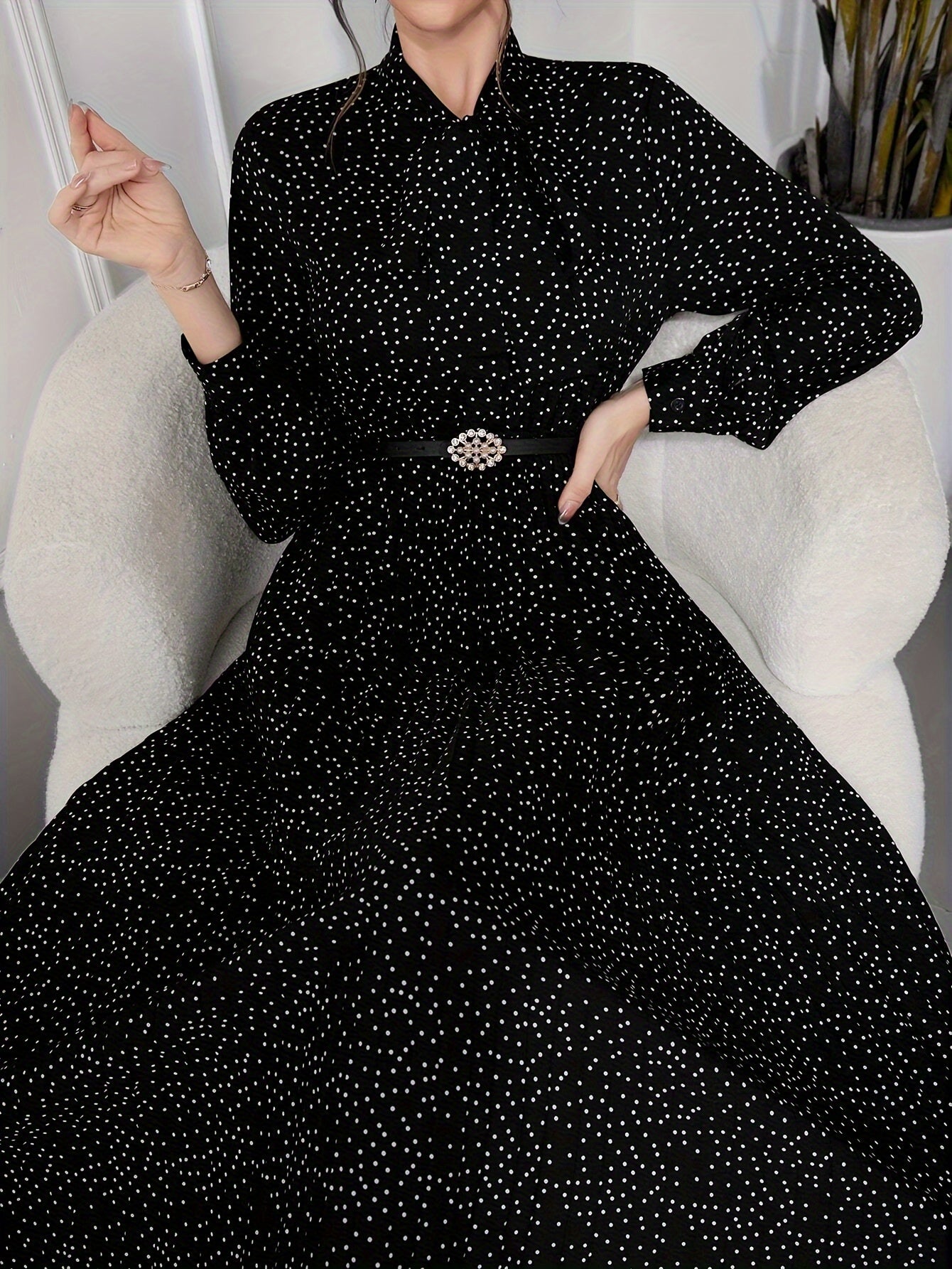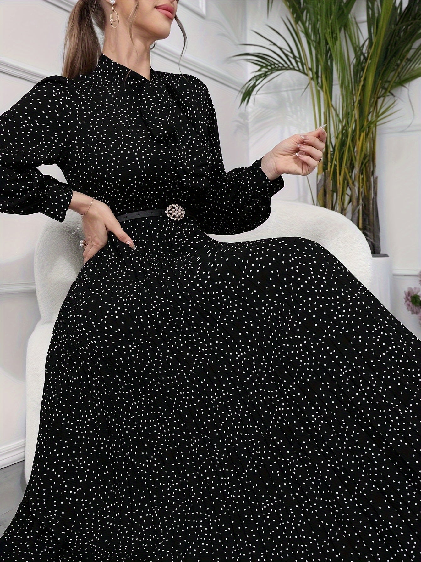 Bahor va kuz uchun qora va oq rangli gul bosma kiyingan kiyingan bilan bog'langan bo'yinbog'li kiyingan