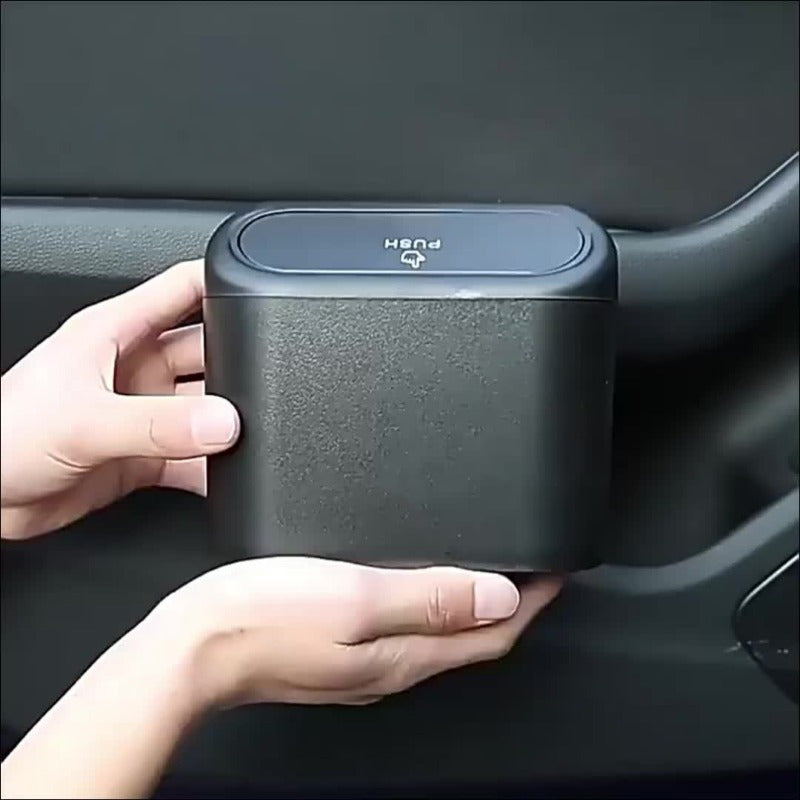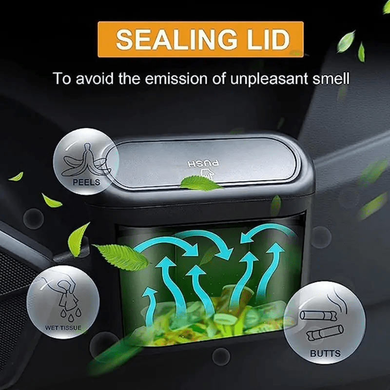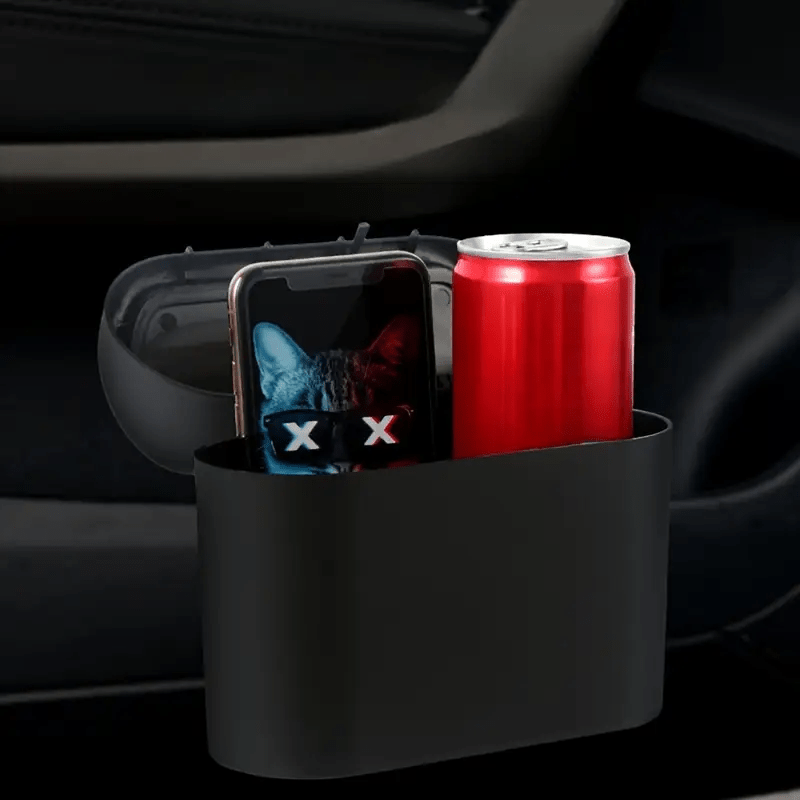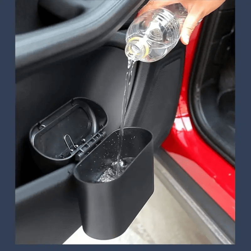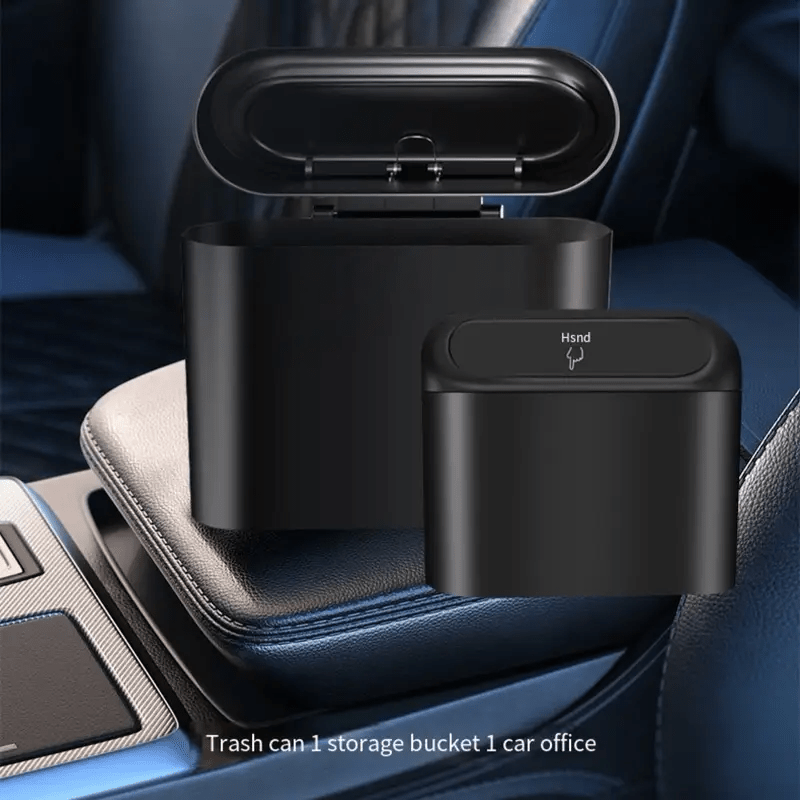 Qora avtomobil axlat qutisi, qopqogʻi bilan, yon eshikga osib qoʻyiladigan saqlash, 1 yoki 2 ta toʻplam