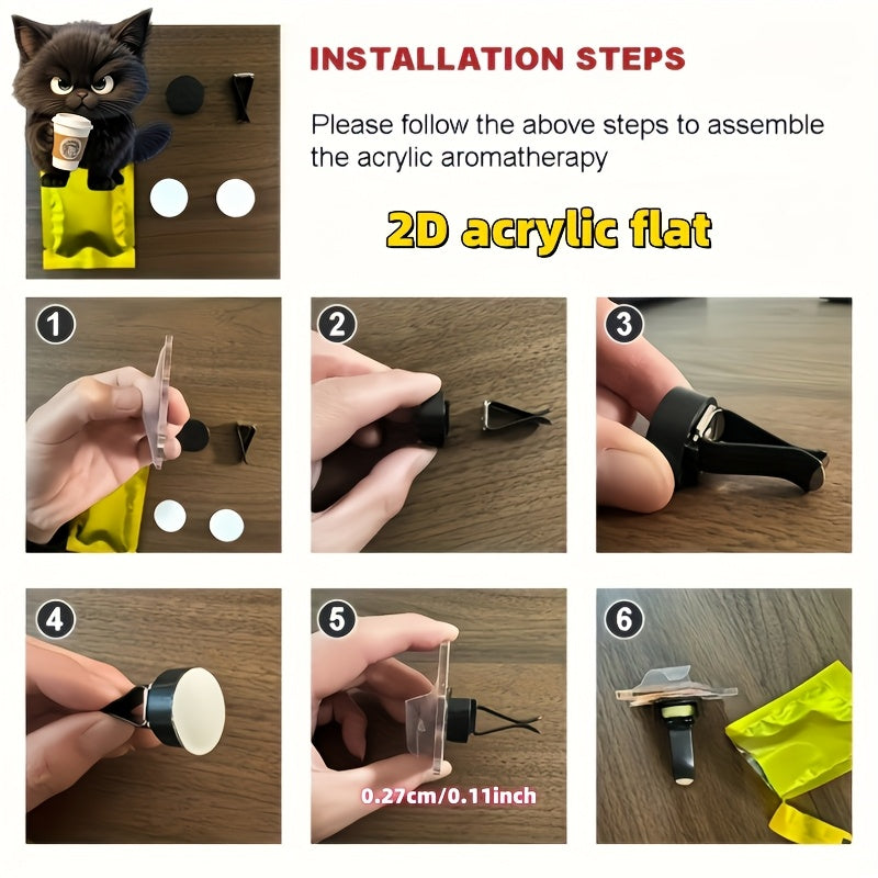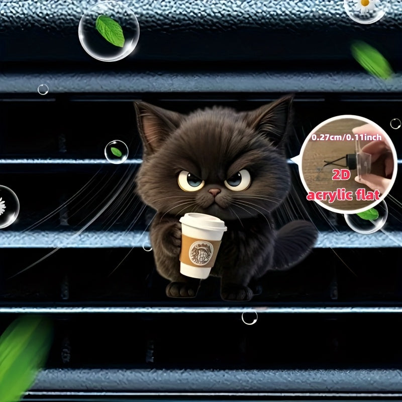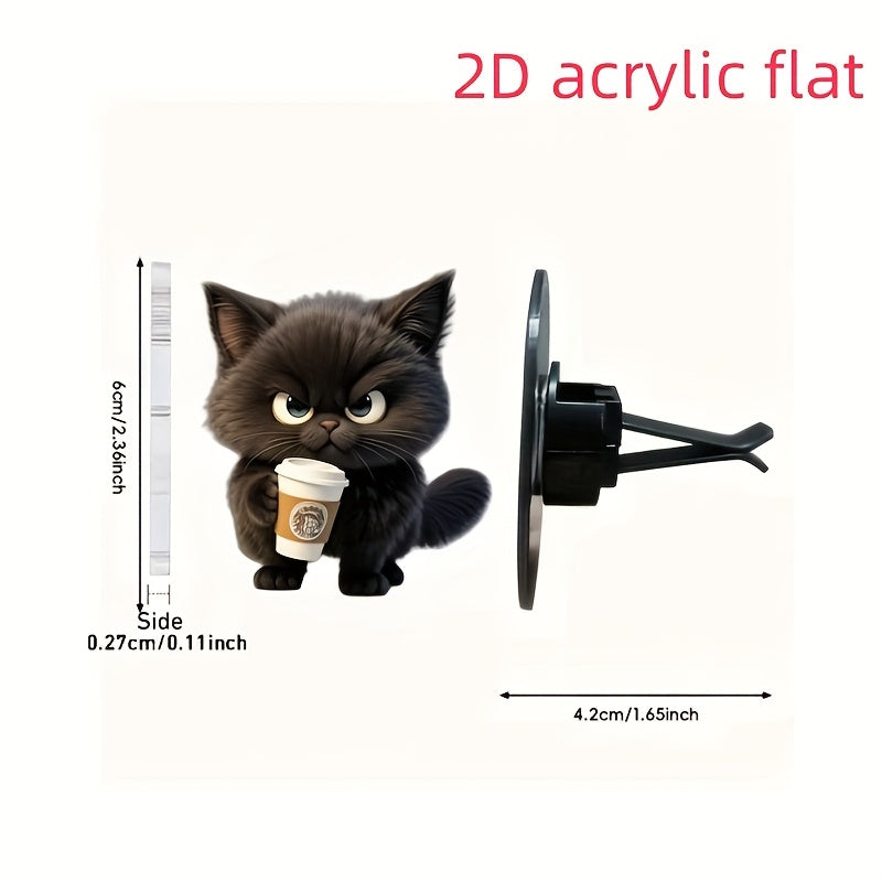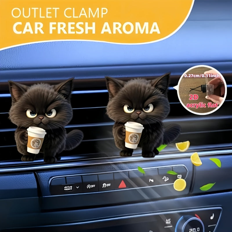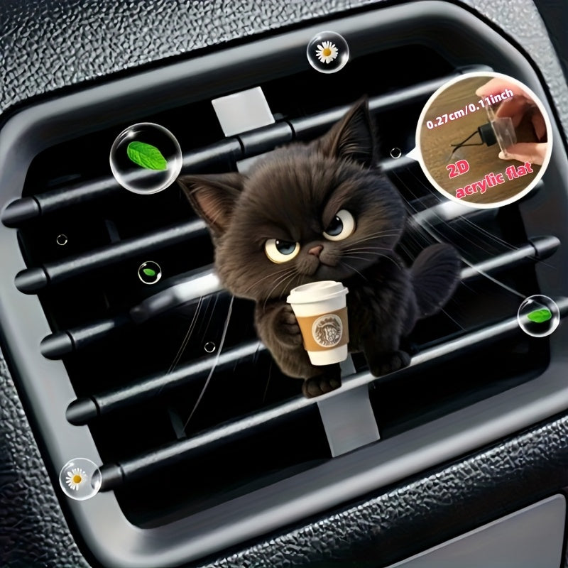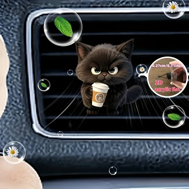Qora Mushuk Avtomobil Havo Tozalash Vositasi Akril Vent Klipi, 2D Tekis Dizayn, Aromatizatsiyalangan