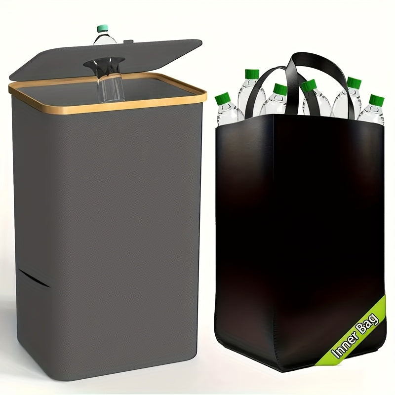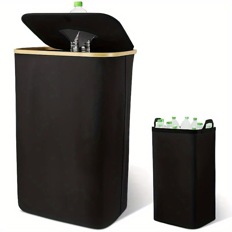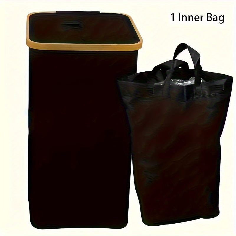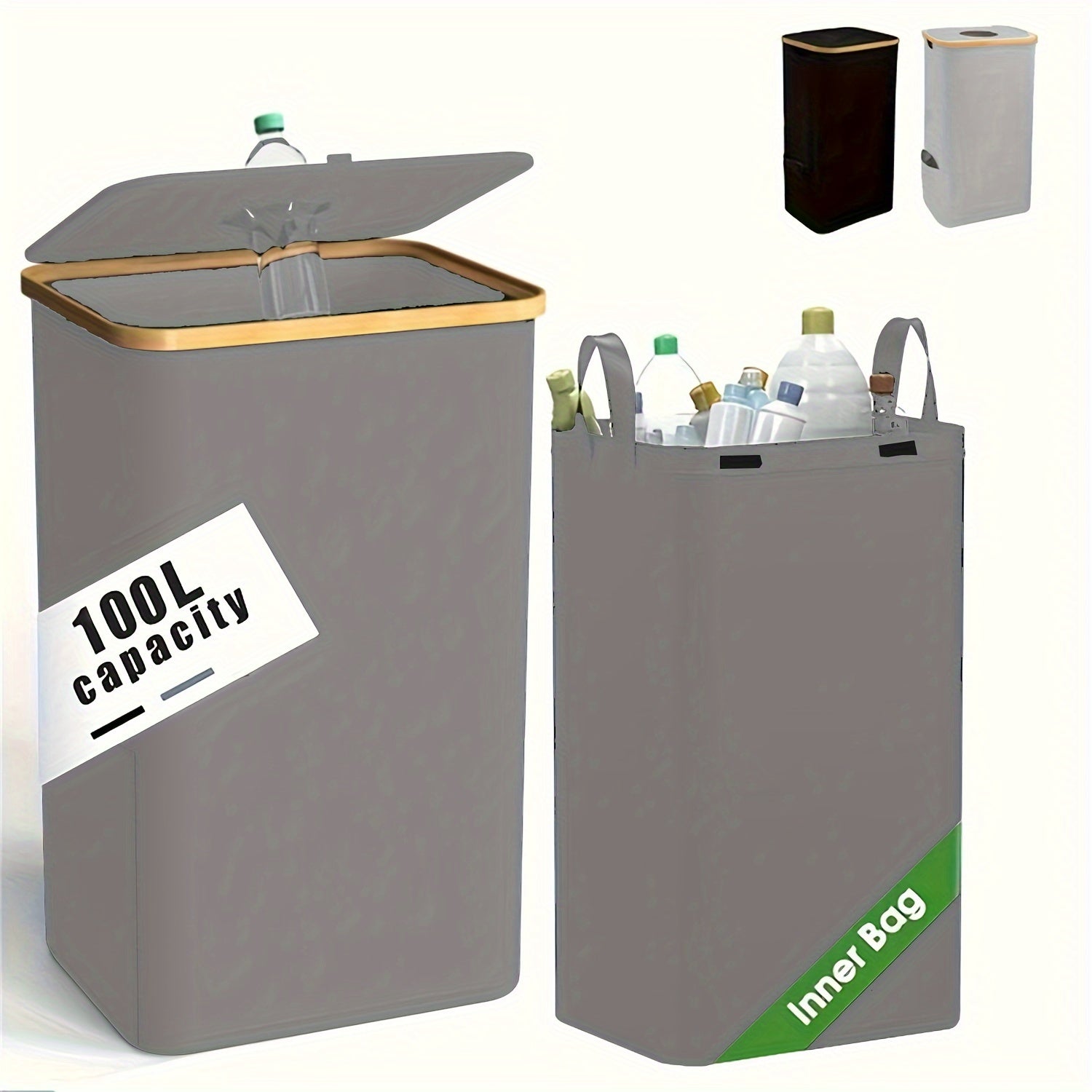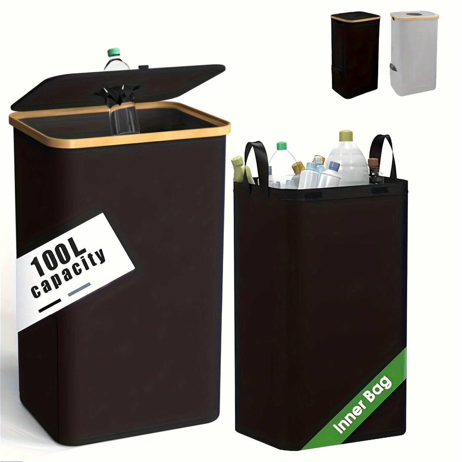 Qora yopiladigan kir yuvish qutisi, qopqog'li, 3 bo'limli, 100L, yuviladigan sumka, yotoqxona va hammom uchun